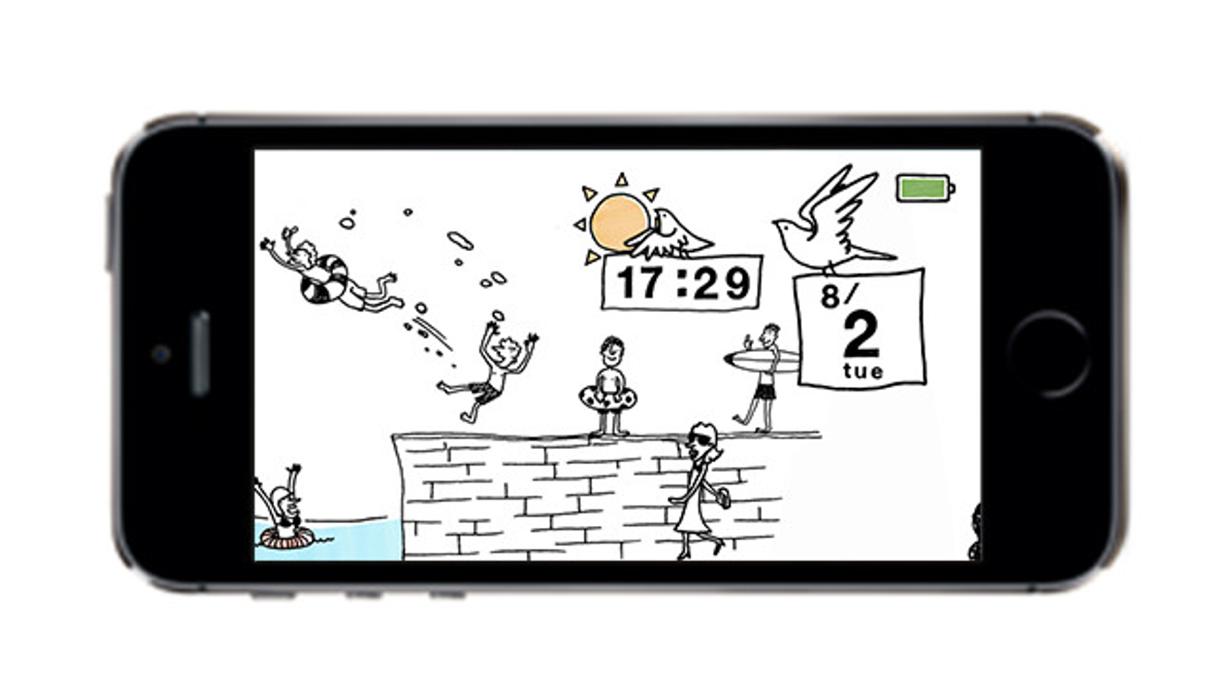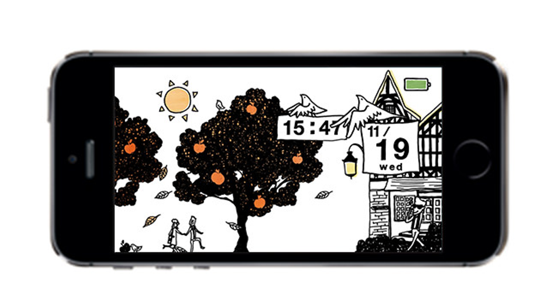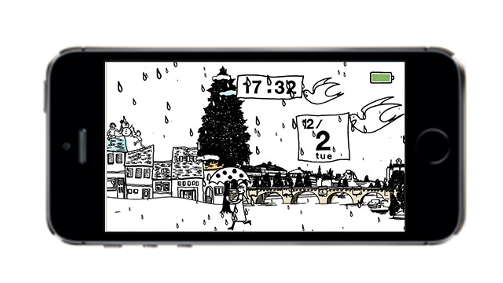 充電する時間をひとつのエンターテイメントと捉え、ランスをイメージした風景が画面を流れていきます。風景は季節ごとに毎回ランダムで生成され、さらにユーザの現在地の天気情報と連携することで、風景の中の天気も変化します。また、画面をタップ・スワイプすることでコンテンツに変化が起き、"一見カレンダーには見えない" というキーコンセプトを体現した、見ても触っても楽しいデジタルカレンダーとなっています。