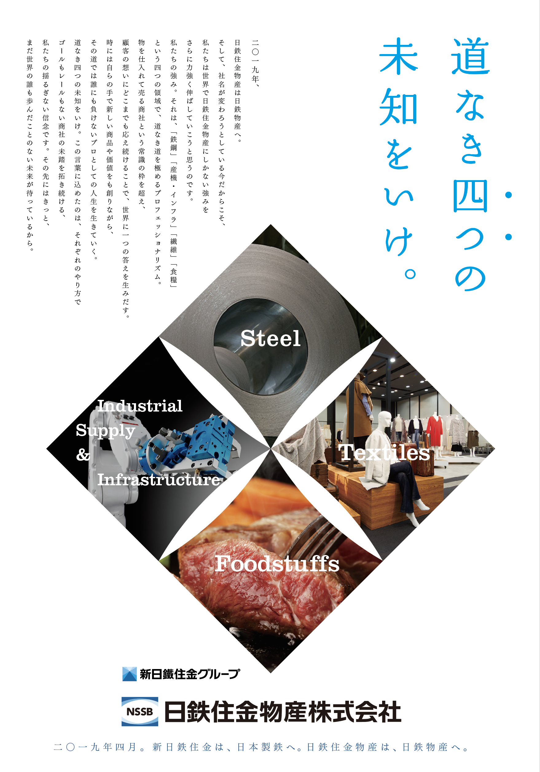 <STORY> 鉄鋼、産機・インフラ、繊維、食糧の4つのコア事業を展開する複合専業商社「日鉄住金物産」の企業キャッチフレーズ策定・コミュニケーション企画・PRをお手伝いさせていただいています。