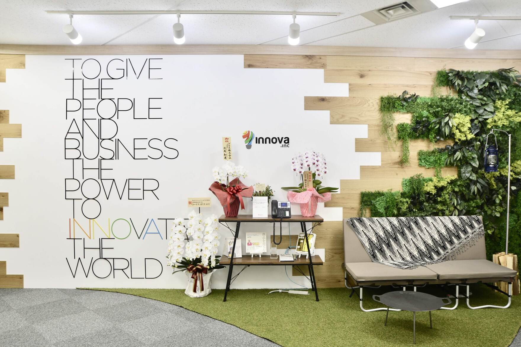 コンテンツ制作、ウェブサイト制作、マーケティングソフトウェア開発を軸に企業のデジタルマーケティングをサポートする株式会社イノーバ。コミュニケーションをもっと取りやすくしたいという要望を受け、「遊び心」と「非日常」というキーワードからキャンプ要素を取り入れた。