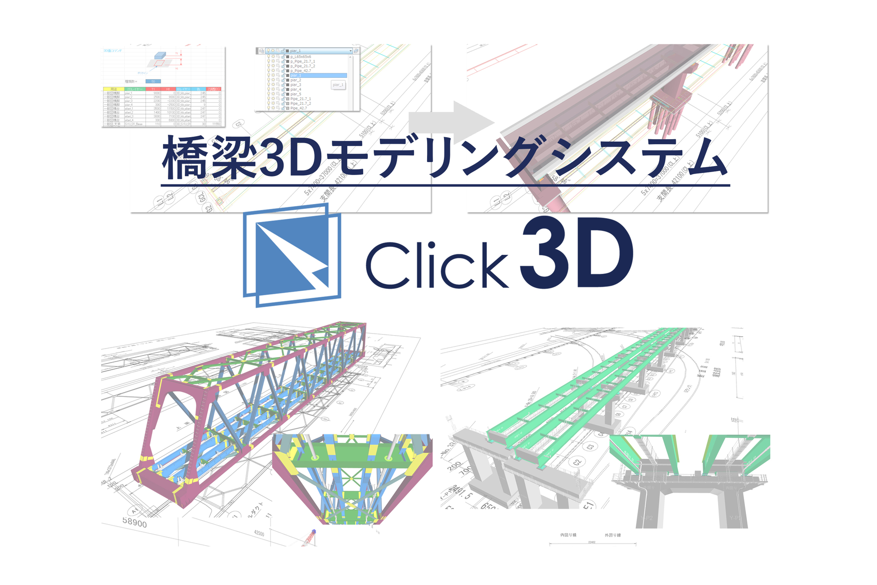 Click3Dは橋梁の2次元設計図面(CADデータ)のレイヤー情報を利用して3次元モデルを自動作成するシステムです。