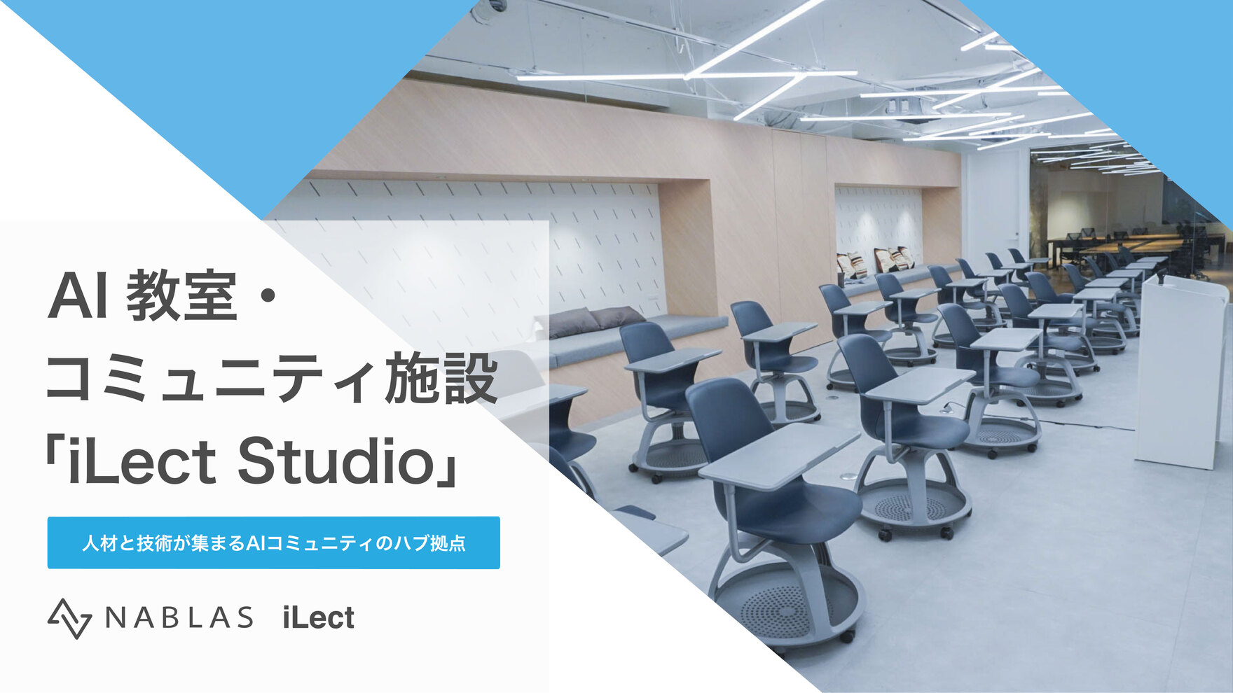 AI技術は進化のスピードが速いため、コミュニティとのつながりによって新しい情報や知識、技術を取り入れることが重要になります。そのためNABLASでは、創業から継続して提供している法人向けAI人材育成事業「iLect」のサービスをより幅広く届けるために、固定型の教室施設「iLect Studio」を開設いたしました。AI人材育成講座の実施だけでなく、勉強会・ミートアップの開催やコミュニティの運営場所としての活用を計画しており、本施設を中心に、AI人材と技術の集まるハブ拠点としての役割を果たしていきたいと考えております。