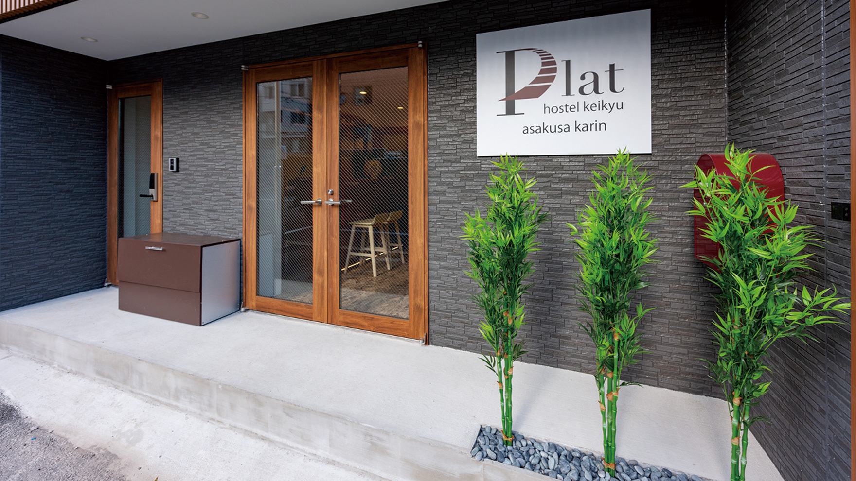 また、『Plat hostel keikyu asakusa karin』は浅草の中心地に立地しており、この立地を活かして屋上からはスカイツリーの全貌が望めるように配置にも工夫が施されています。加えて、外観はアルミ格子を採用することで特徴的な目を引くデザインに仕上がっております。