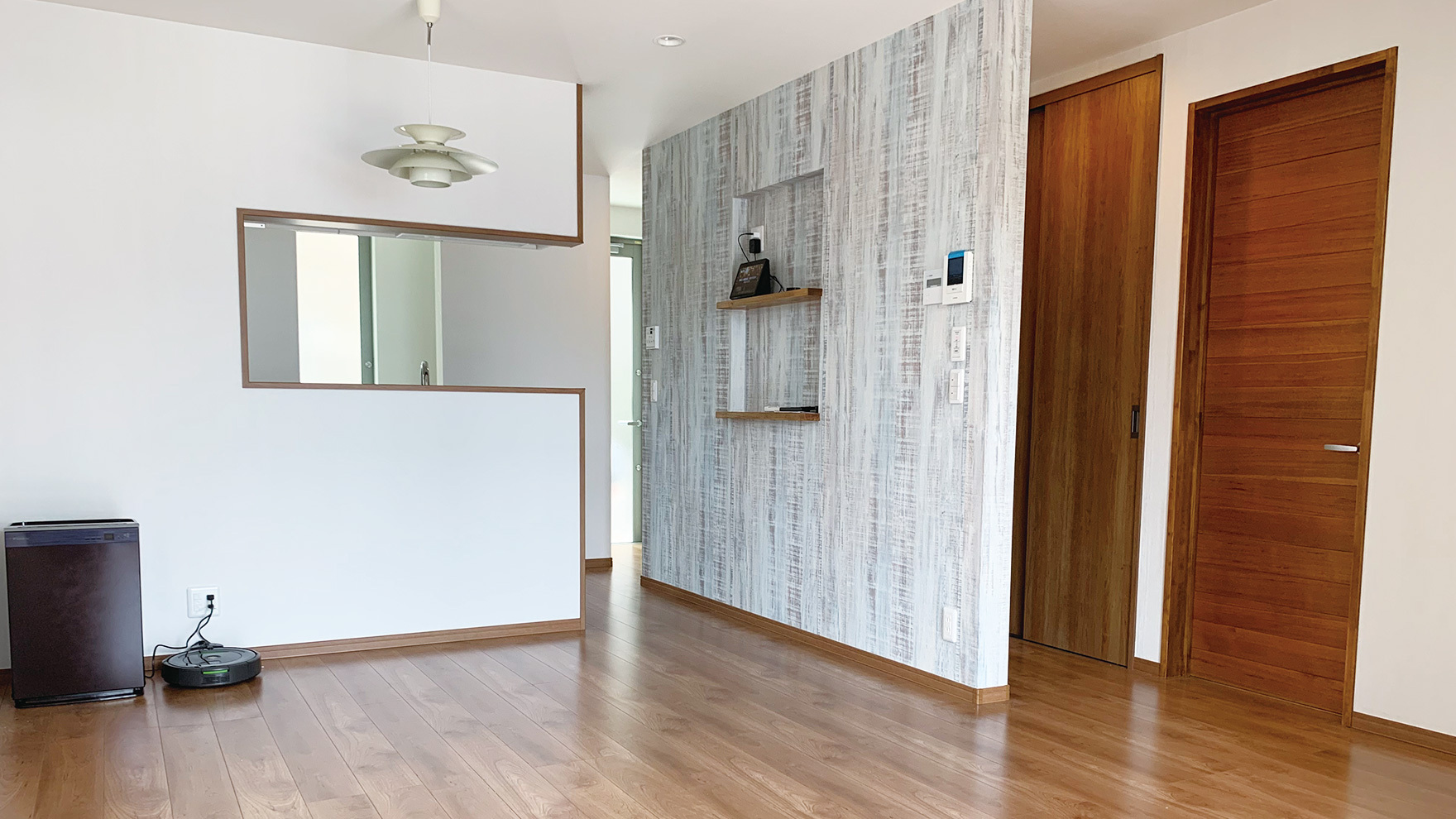 今回の施工においては、使用する木材にもこだわりが。ラオスの工場から独自ルートで仕入れた日本では珍しい「Maysi」を扉の素材として活用。快適性、安全性、デザイン性を追求した新築戸建て物件に仕上げられています。