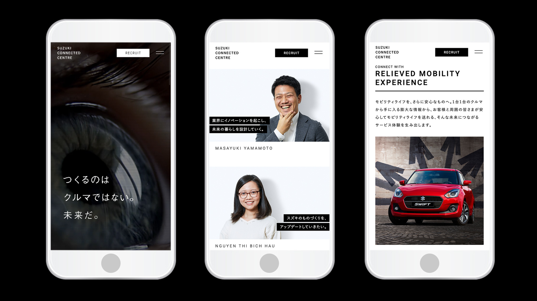 2019年度、インド市場でコネクテッド事業プロジェクトを立ち上げたSUZUKI CONNECTED CENTRE。いまのSUZUKIの取り組みや、グローバルな社員インタビュー記事を通して、働く場所としてSUZUKI を選ぶ理由を魅力的に紹介。ファーストビューでは、ものづくりを想起させるムービーと、メインコピーを印象的な演出で表現。「未来をつくるSUZUKI」の姿勢を感じられるサイトに仕上げた。
