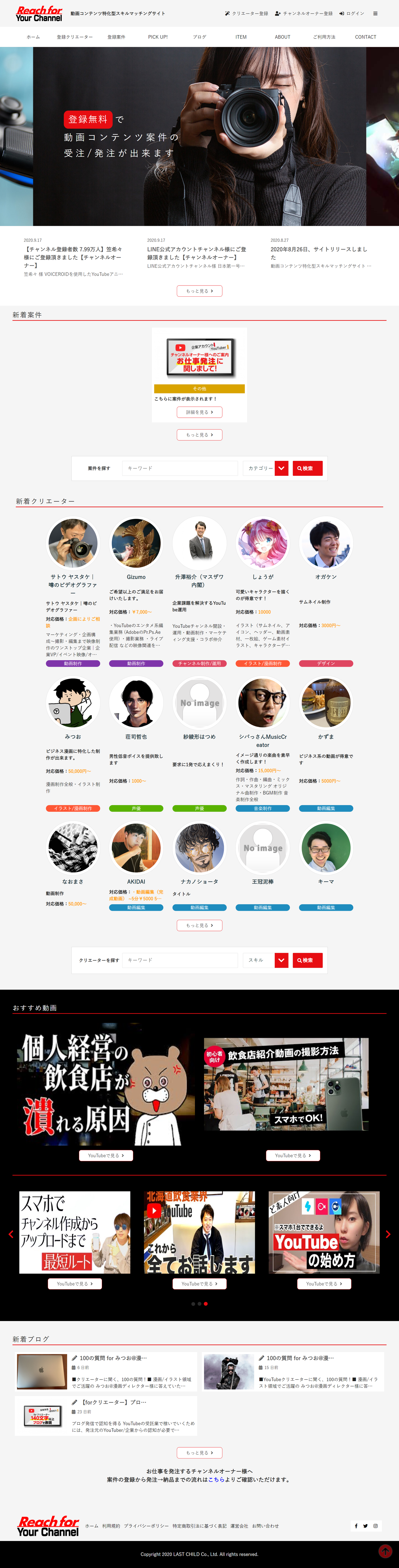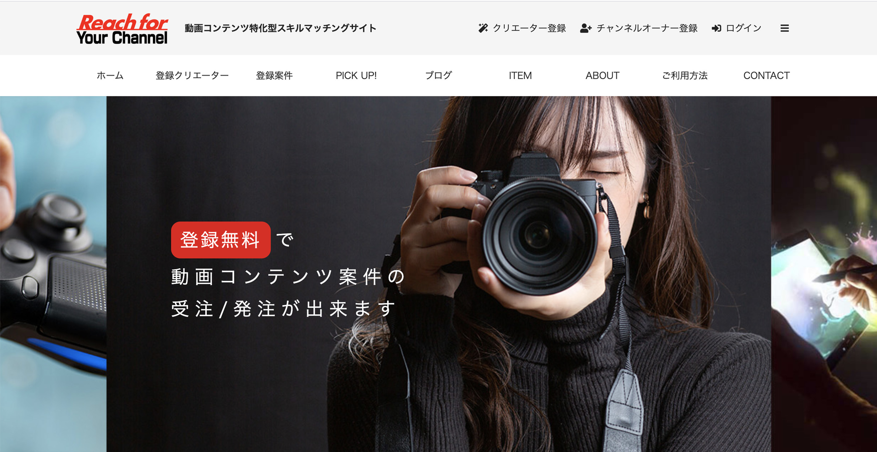 動画コンテンツの受注、発注、クリエーターへのオファーが出来るマッチングサイト「Reach for Your Channel」。動画配信でスキルを売る、または自作動画コンテンツを制作することのできるマッチングサービスです。