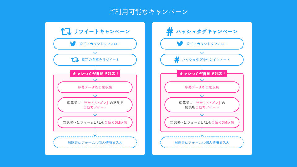 「キャンつく for インスタントウィン」は、Twitterでインスタントウィンキャンペーンを実施できるツールです。