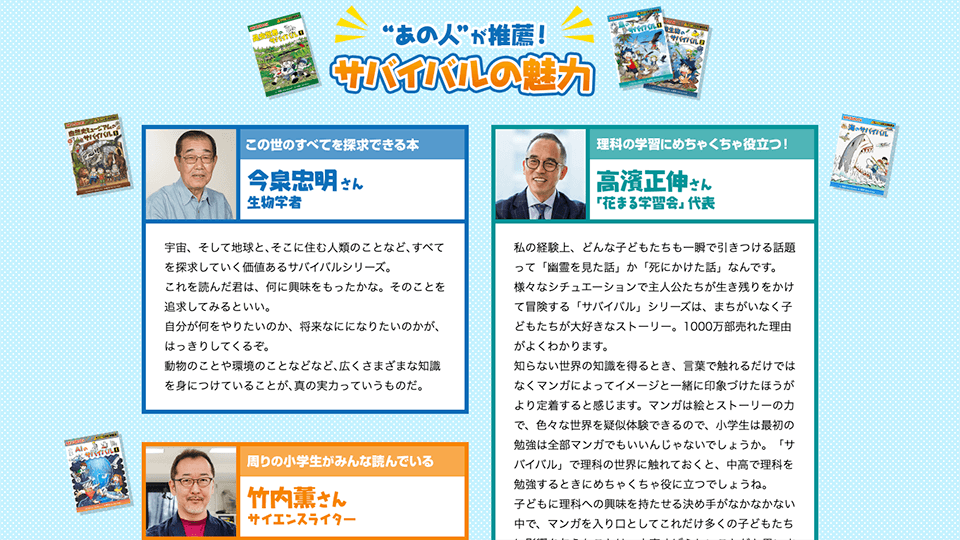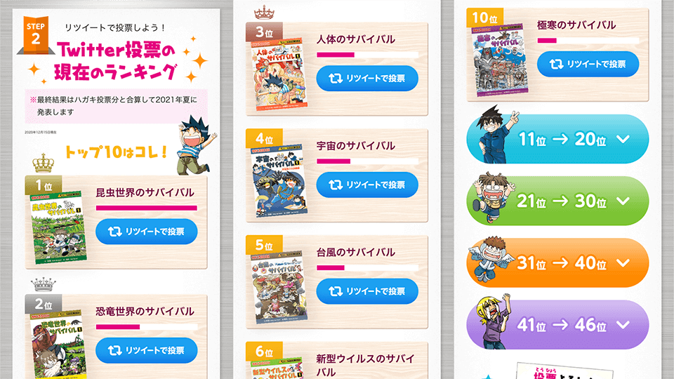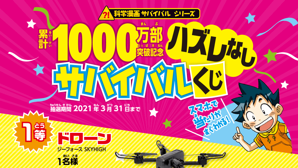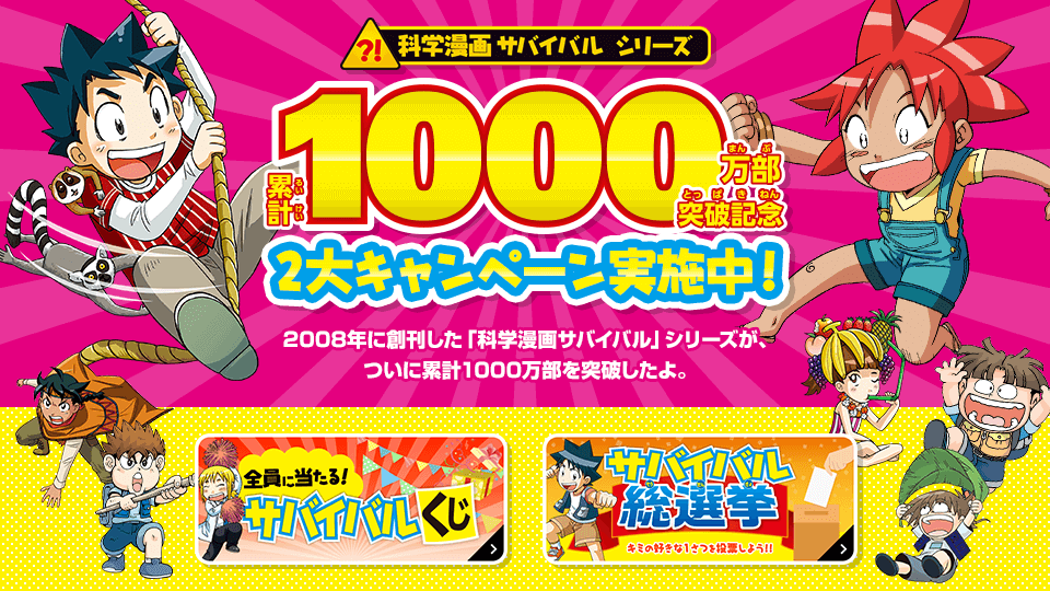 朝日新聞出版様小学生向けの学習マンガ「科学漫画サバイバル」シリーズの累計1,000万部突破を記念したTwitterキャンペーンです。