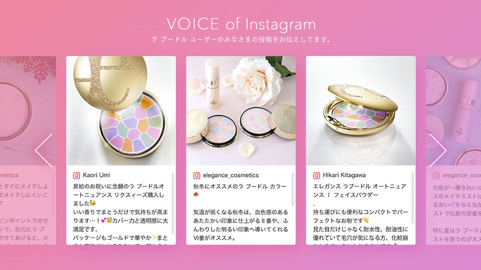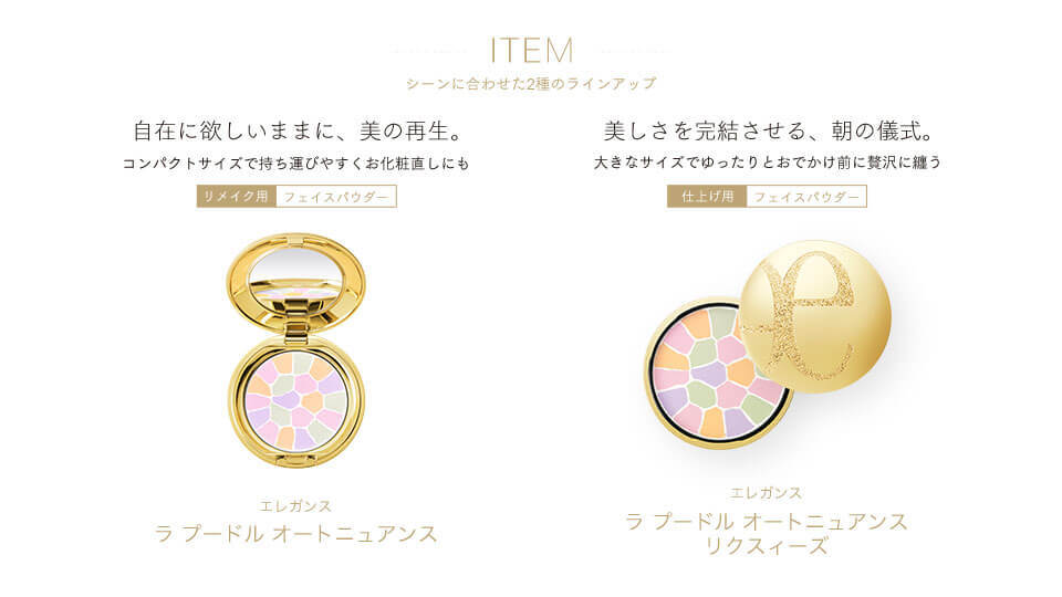エレガンス様のフェイスパウダー「ラ プードル」のスペシャルページ。リニューアル施策となります。