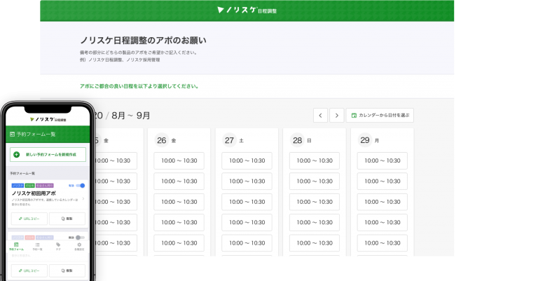 Googleカレンダーと連携することで日々の業務で発生する面倒な日程調整を丸投げし、営業活動の質と量の向上につなげることのできるツールです。