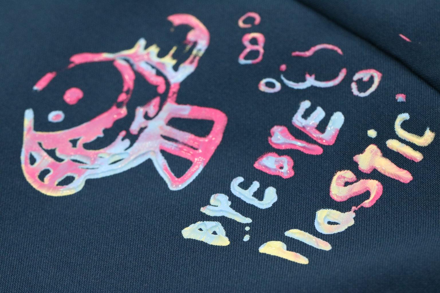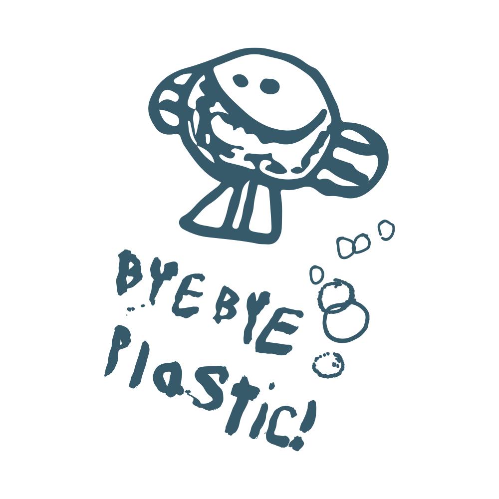障害者向けのアートワークショップで描かれた作品たちを原案に完成したBYE BYE Plasticプロジェクトのロゴマーク。