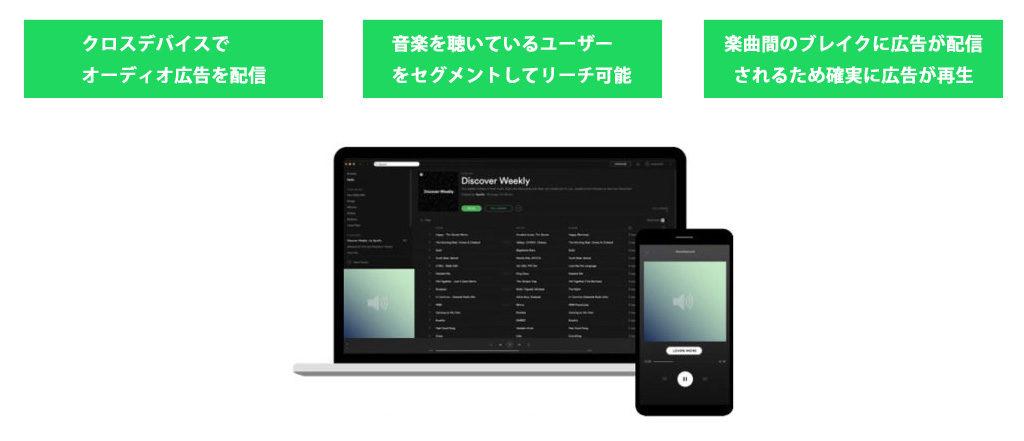 定額音楽サービス『Spotify(スポティファイ)』へのデジタル音声広告の制作&プログラマティック広告配信運用サービスです。