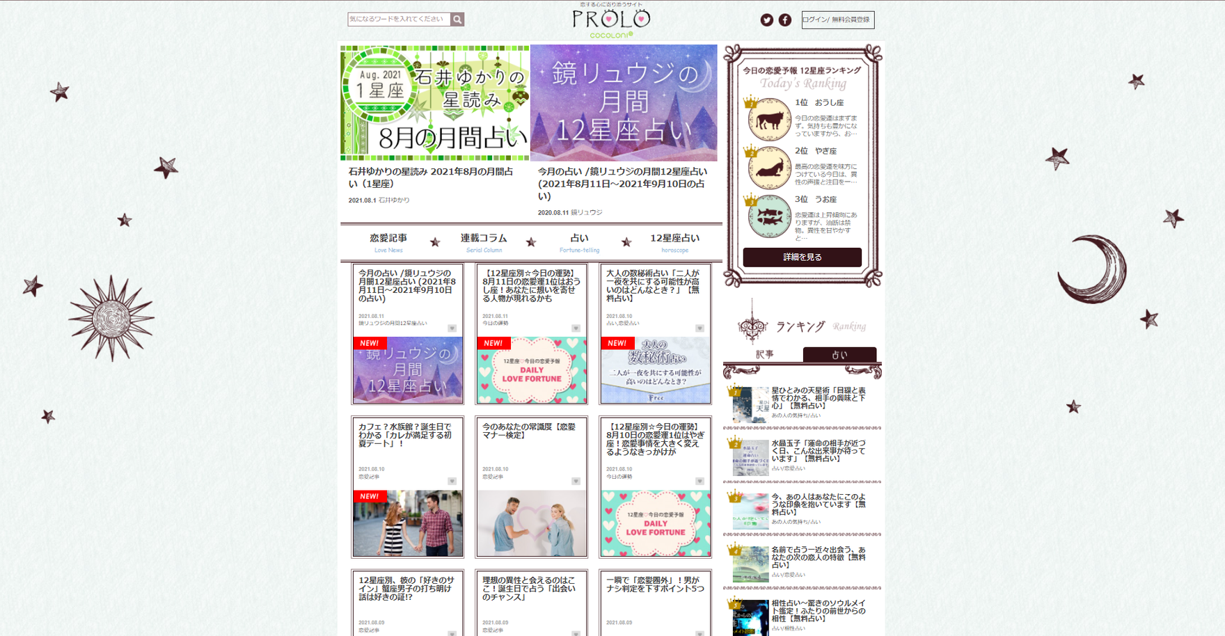 恋愛×占いメディアとして2012年にオープン。幸せになれる恋や生き方を望む女性に向けたコラムや記事を多数掲載。
