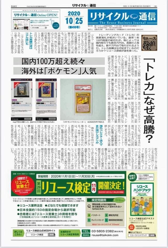 「トレカがなぜ高騰しているのか」というテーマで当社のネット販売における実績が掲載されました。