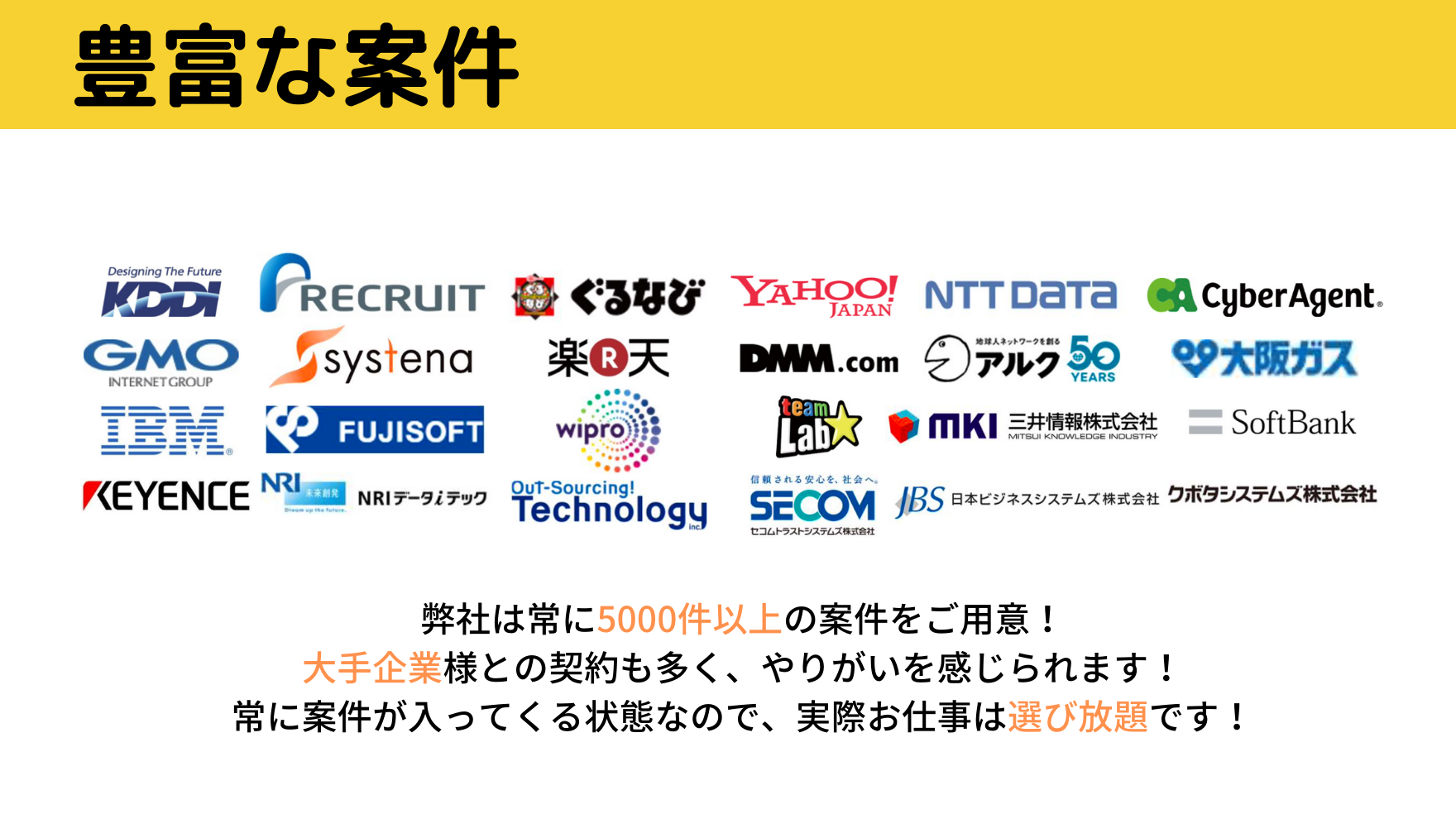 案件の種類がとても豊富なので、ご自身のスキルやライフスタイルに合わせてお仕事は選び放題です!