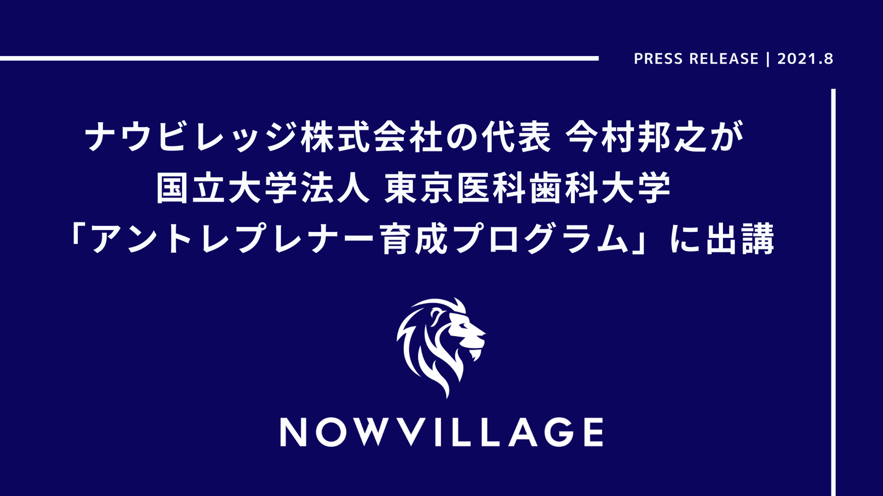 企業のマーケティング活動を支援するナウビレッジ株式会社(本社:東京都新宿区、以下「ナウビレッジ」)の代表 今村邦之が、国立大学法人東京医科歯科大学「アントレプレナー育成プログラム」のカリキュラム開発に参画、同プログラム「デジタルマーケティング」の担当となることをお知らせします。