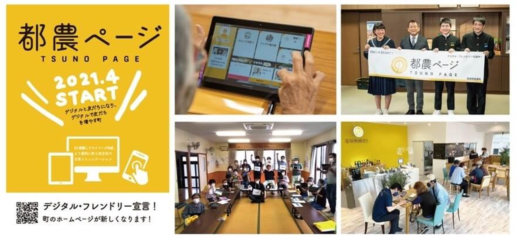 都農町・つの未来財団と官民連携で、「2,000世帯へのタブレット配布」「ホームページリニューアル」「光回線全世帯整備」「高齢者向け講習会」の4つの施策を同時に推進。そのしくみが評価され2021年グッドデザイン賞ベスト100に選出。