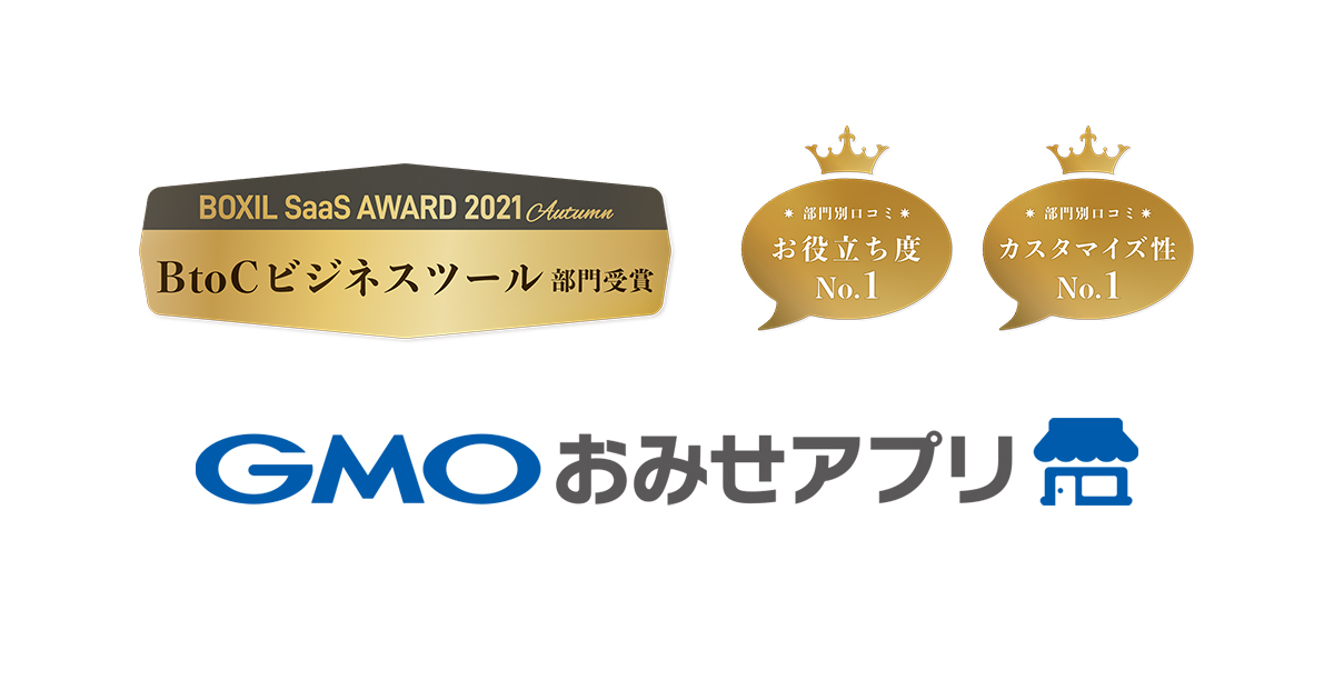 今回の「BOXIL SaaS AWARD 2021 Autumn」では、大賞4サービス、部門別1位14サービス、部門賞225サービス(※2)が選出されました。「GMOおみせアプリ」はユーザーからの高い評価により「BtoCビジネスツール部門」で受賞する運びとなりました。