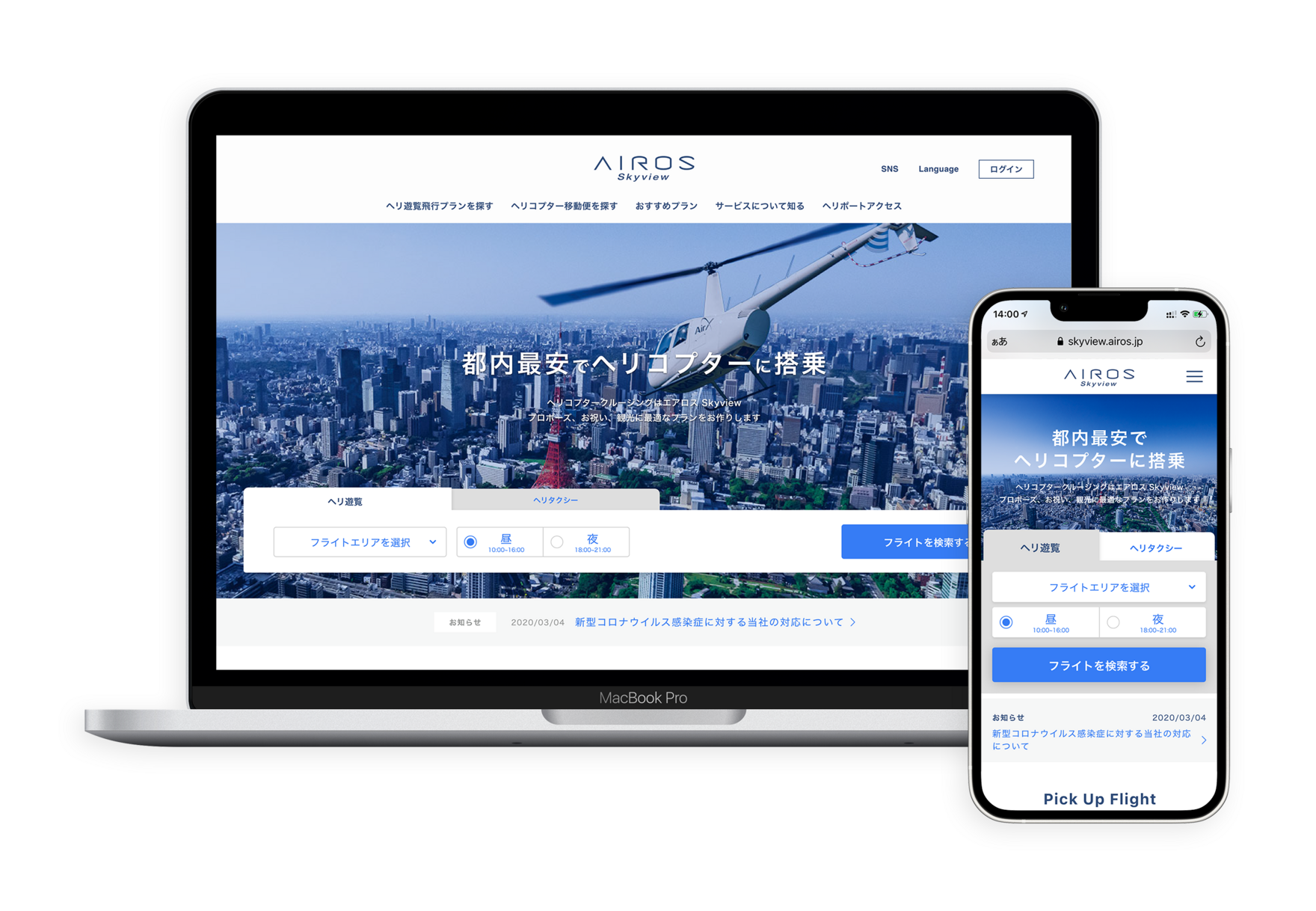 ヘリコプター遊覧予約サービス「AIROS Skyview」
