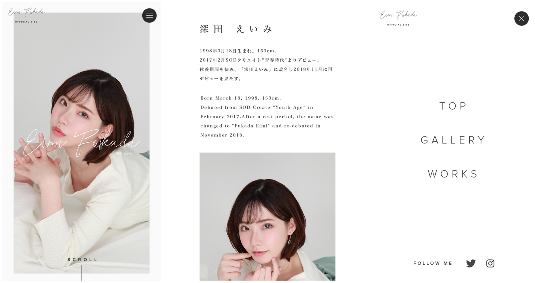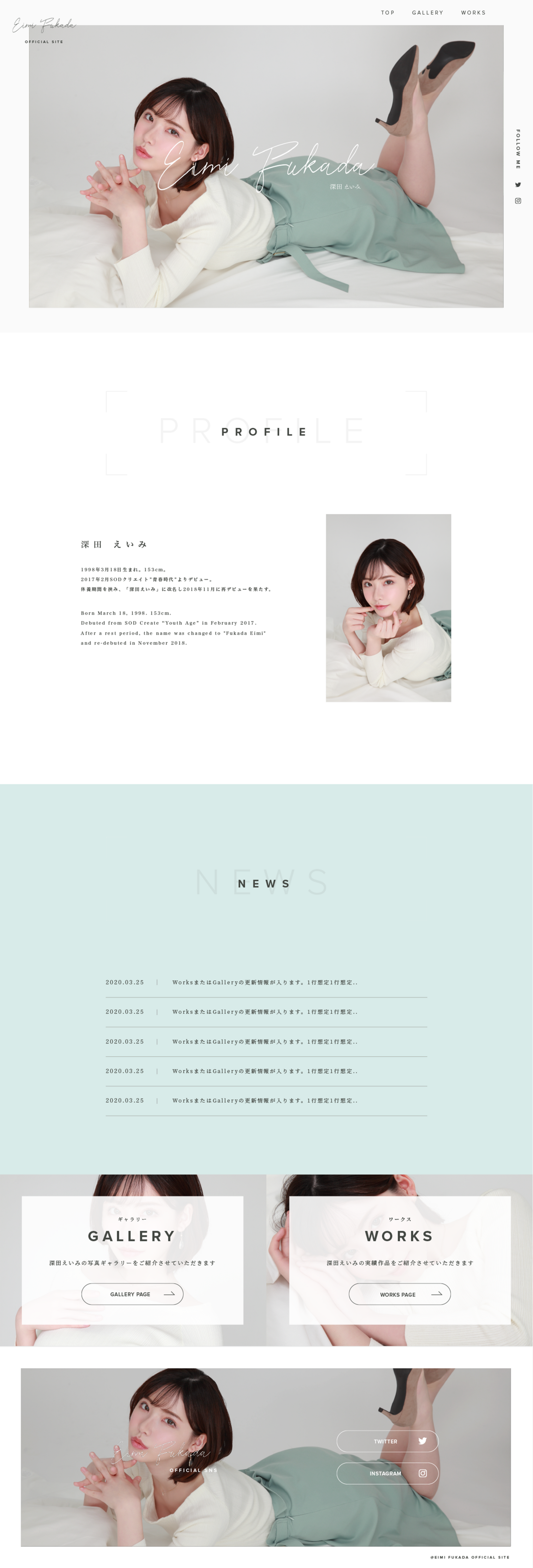 深田えいみさんのブランディングの一環としてオフィシャルサイトを新規で制作させていただきました。PMは株式会社カイユウ様、弊社ではアートディレクション、ディレクション、デザインを担当させていただきました。