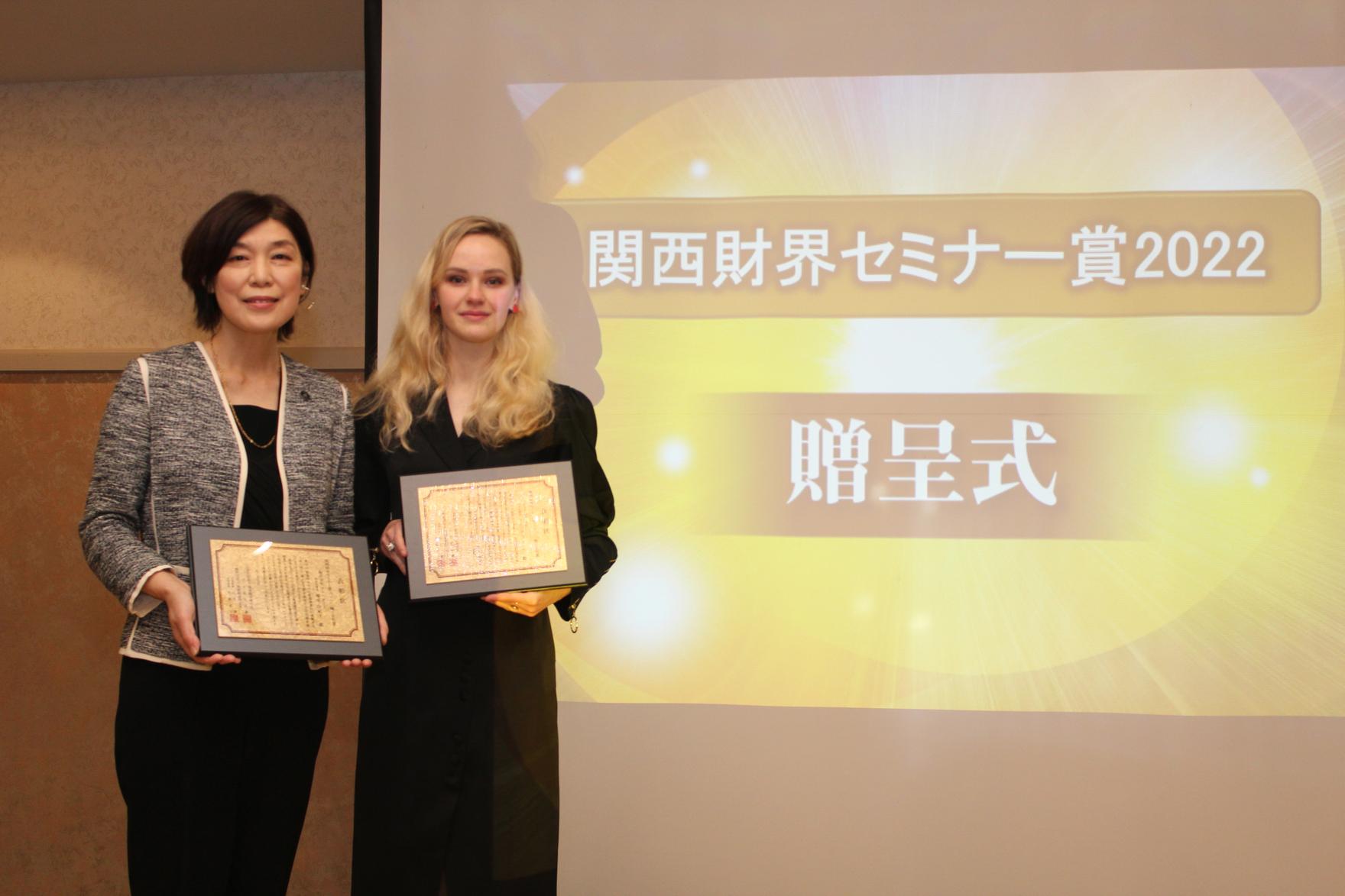2022年2月9日に大阪市内で「関西財界セミナー賞2022」贈呈式が開催されました。