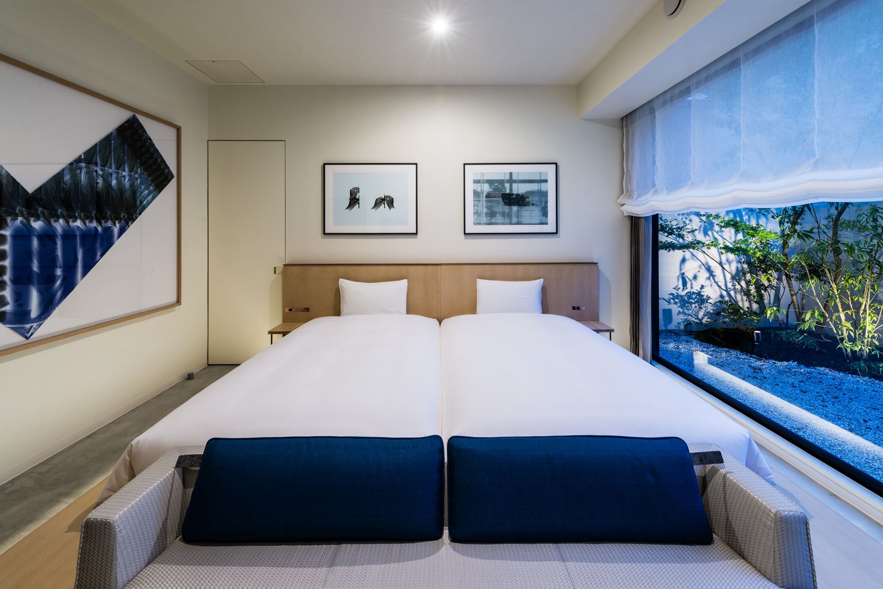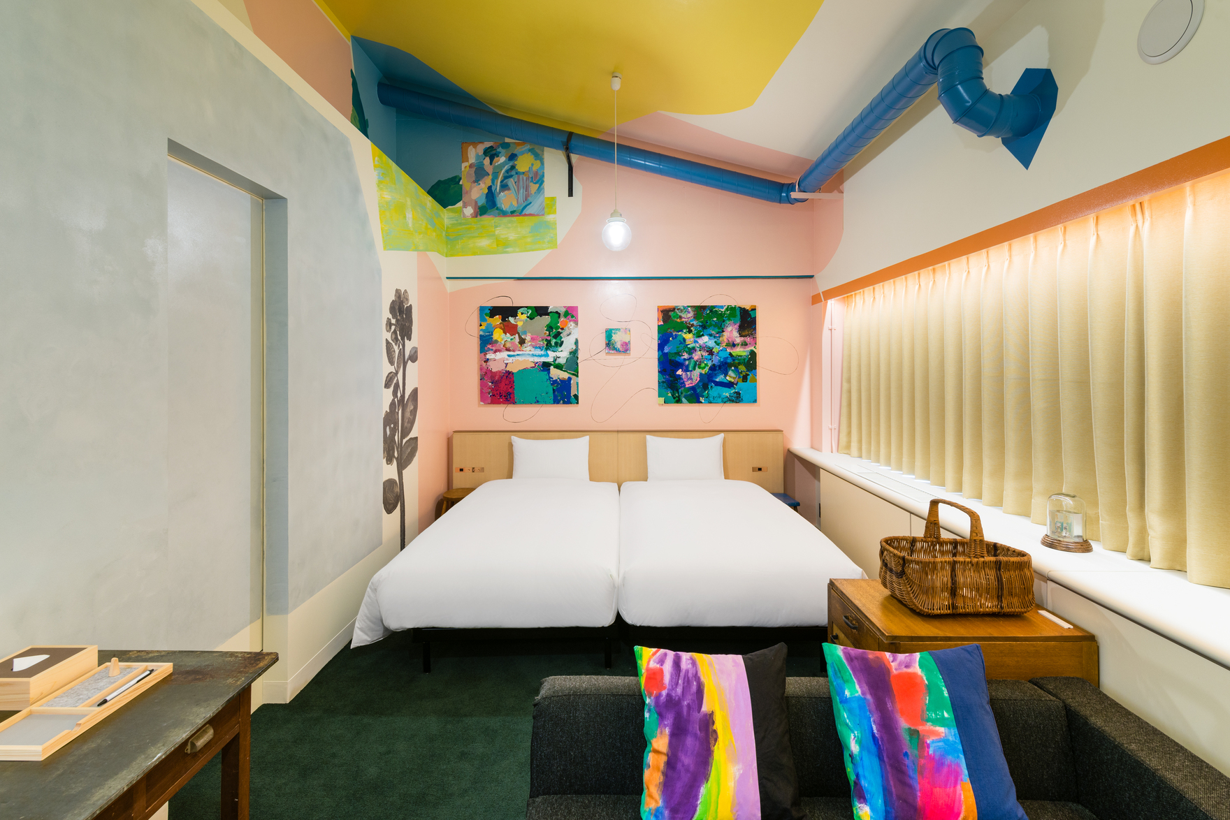 築23 年の学生寮をホテルとアパートメントから構成される新しいスタイルのホテルへコンバージョン。UDSが企画、設計、運営を手がけています。2016年7月に、これまで学生寮として使用していた棟を客室へと一新し、リニューアルオープンしました。開業時からのコンセプトである「常に変化する京都のアート&カルチャーの今」に「和」の要素を加え、アートも更に強化させました 。「365日アートフェア」という新たなテーマのもと、館内のいたる所に購入可能なアートが展示され、名和晃平氏や蜷川実花氏ら10組以上のアーティストが客室を手掛けるコンセプトルームが誕生。