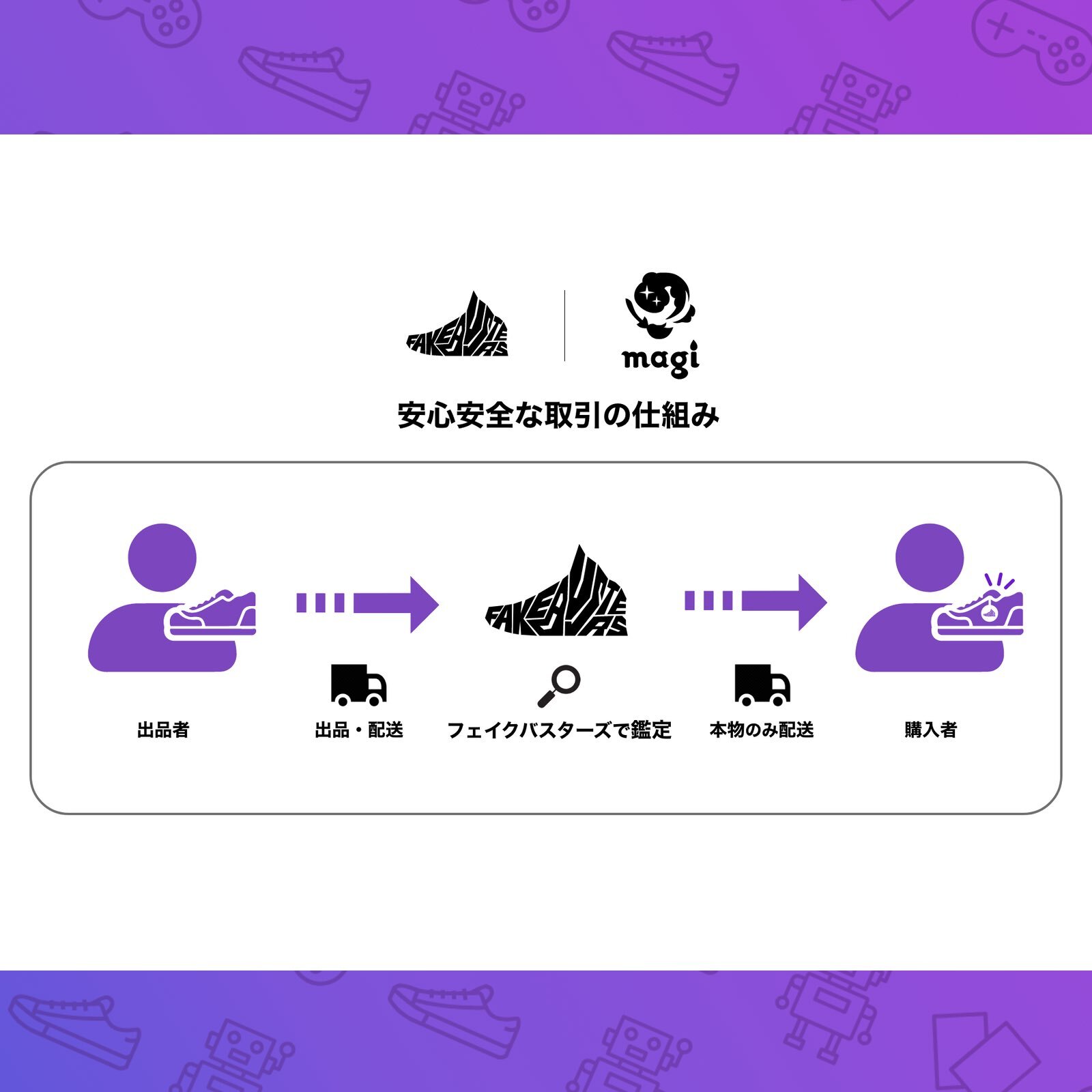 株式会社ジラフ(本社:東京都中野区、代表取締役社長:麻生輝明)は、2022年4月13日にコレクター向けフリマアプリ「magi(マギ)」において、スニーカー・ホビーの取り扱いを開始し、スニーカー鑑定サービス「フェイクバスターズ」を運営するIVA株式会社(本社:東京都渋谷区、代表取締役社長:相原嘉夫)と業務提携を行うことで、スニーカーの鑑定機能をご利用いただけるようになりました。本鑑定が行われたスニーカーにはmagi×フェイクバスターズ公式の認証タグが付与され、本物であることの証明となります。