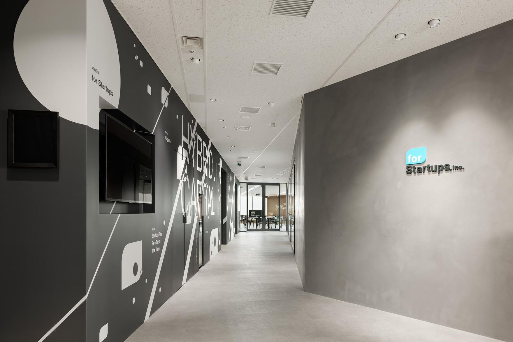 フォースタートアップスのオフィスをデザインする背景にある考え方として、"第二の家(my/our home)"というものがあります。人が人生の大半を費やすことになるオフィス空間が、生産性と効率性の追求によって人間性や個性が失われる場所になることは望ましくありません。オンラインとオフラインを使い分けながら仕事をするハイブリッドワーク時代において、オフィスとは「場」であると同時に「コミュニティ」であると考えています。共同体としてだけでなく、一人一人の自己実現や社会との関わりにおいても重要な場がオフィスであり、「ワークプレイス」である以上に「リビングプレイス」であることが重要です。当社のミッション・ビジョンに共感し、志のもとに集う未来の仲間や挑戦者のためにも、次なる進化の原点をここに創りたいと考え、社内外の素晴らしいプロジェクトメンバーとのコラボレーションによって新しい風景をこの場に生み出しました。