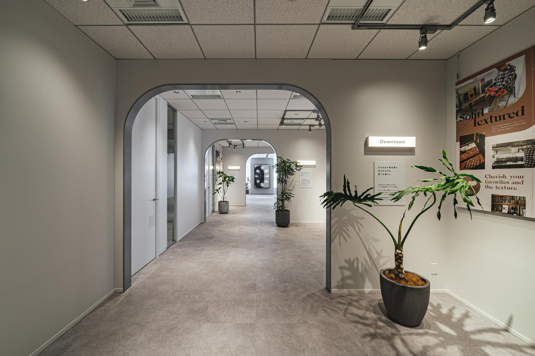 また、カウカモの物件に合わせたライフスタイル(内装)提案サービスを魅せる空間として、そのライフスタイルを一覧できるアーチの壁が連続する印象的な空間を作った。ここでは「1つだけではない色んな暮らしがカウカモでは実現できる」という意味を込めている。