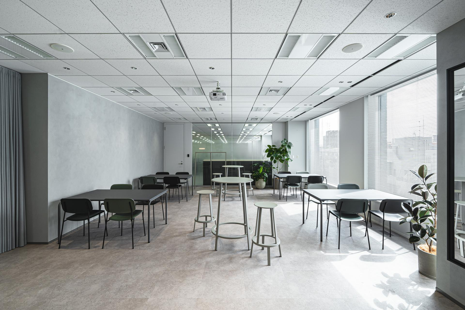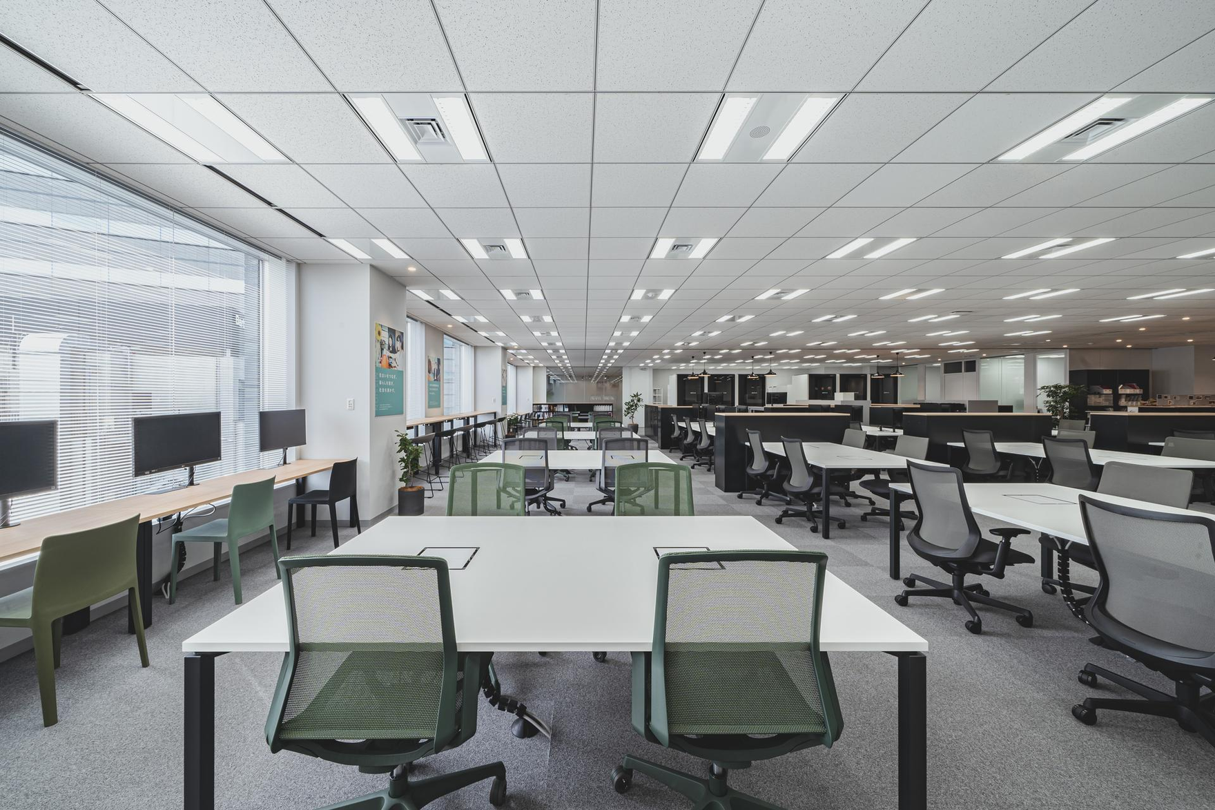 新オフィスは営業拠点と接客拠点を融合させたオフィスとなっており、cowcamoらしさが詰まった空間となっている。