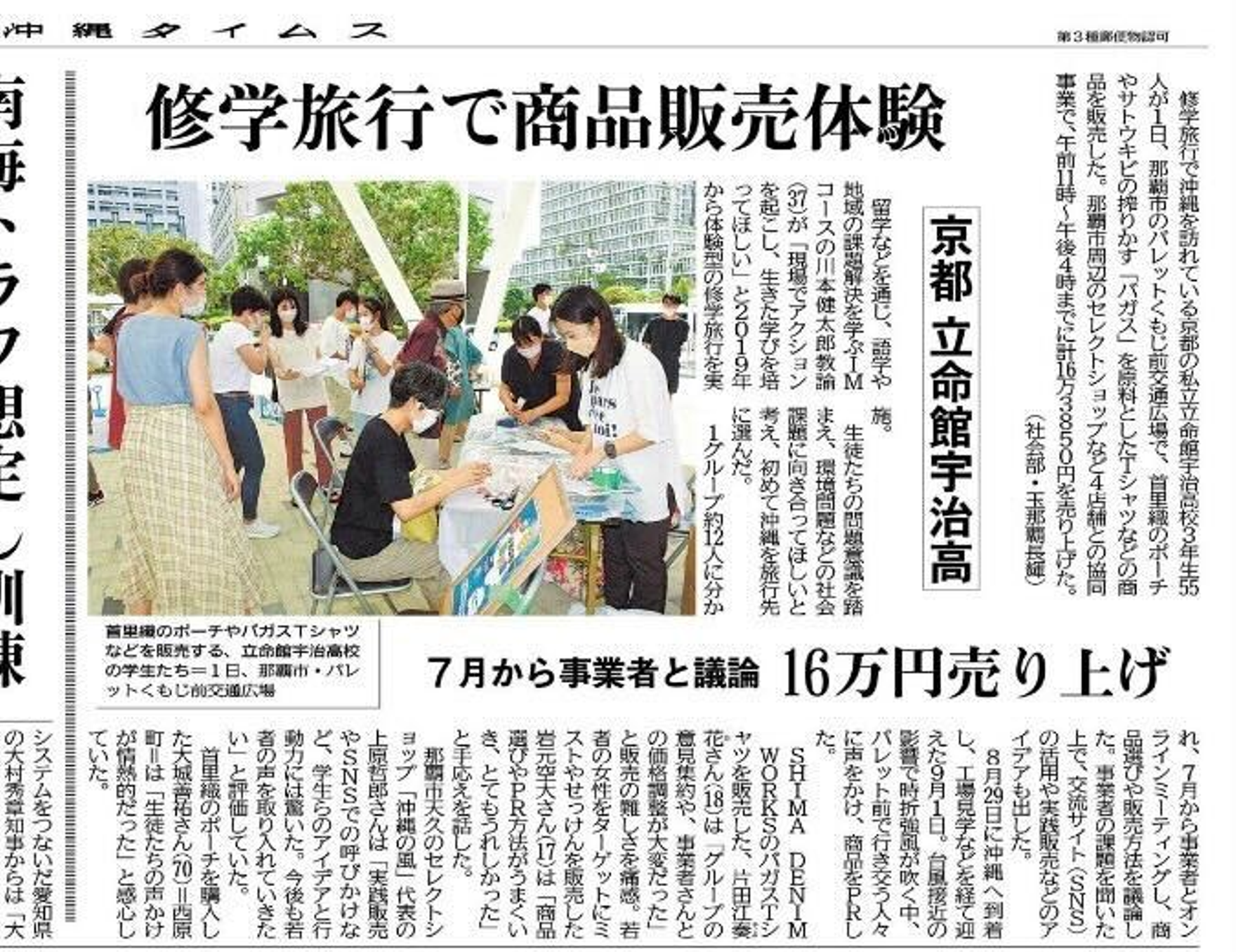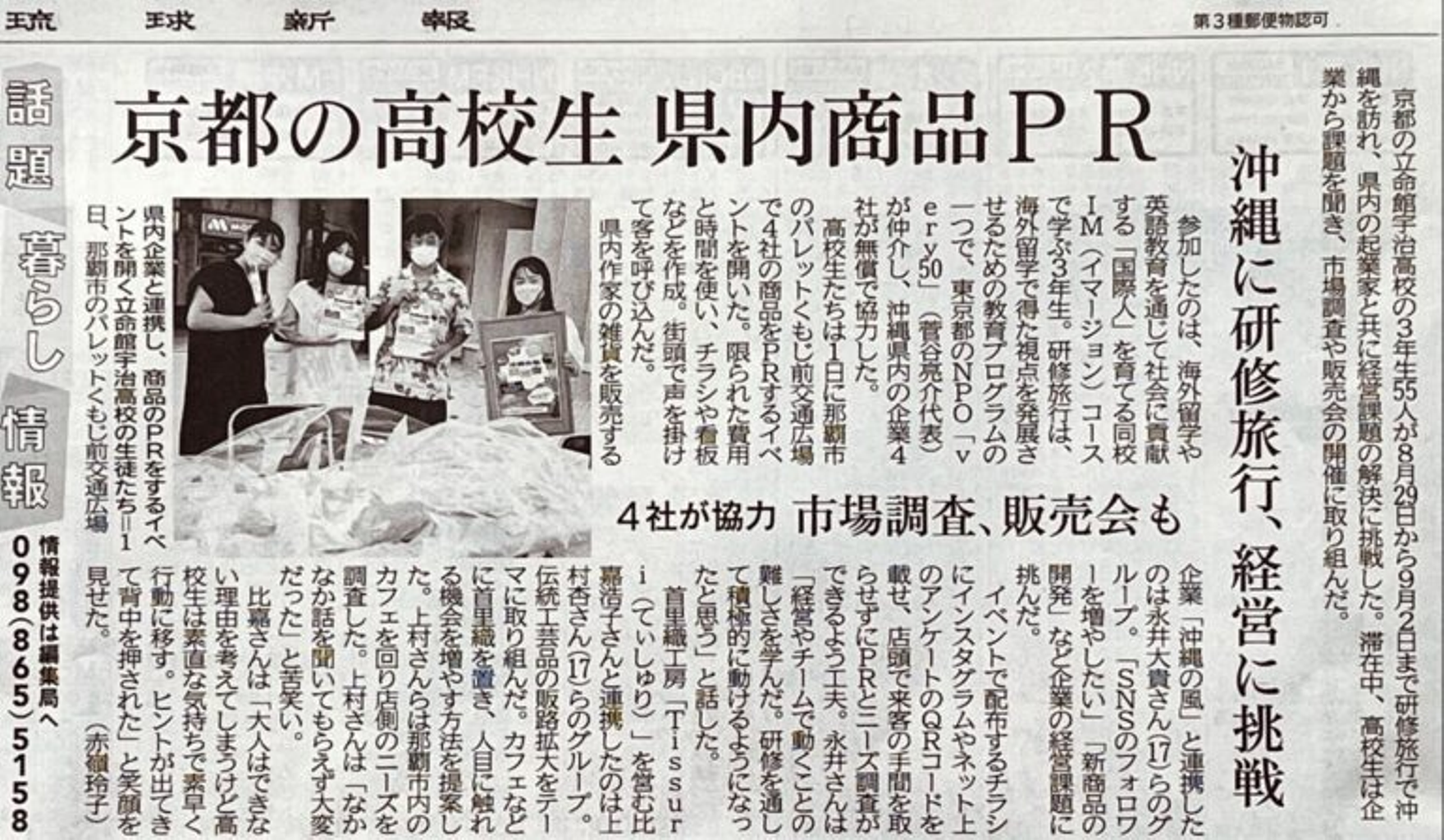 その集大成の1つとして「1日で事業家の方に売上を作って貢献する!」をテーマに、9月1日に1日限定の商品販売ポップアップイベントを実施しました。その様子を取材いただき、沖縄タイムス・琉球新報さんに記事として掲載いただきました!