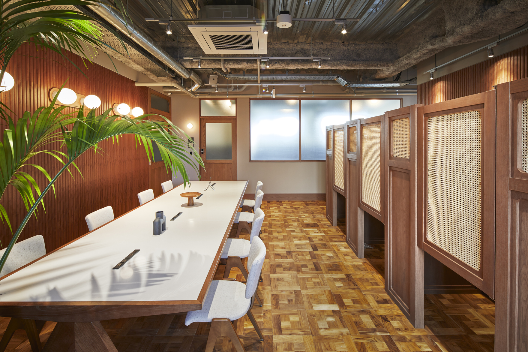 グリーン豊かなオープンラウンジや入居者専用の共用ラウンジ等のパブリックスペースはもちろん ニューノーマルな働き方に対応するフォンブースやミーティングルームなども揃います。