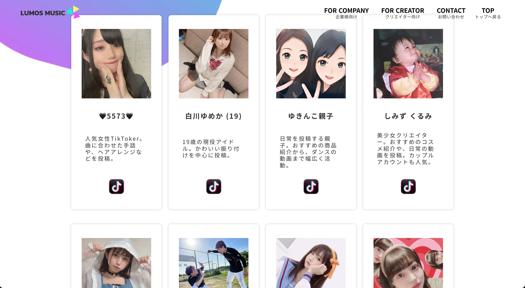 自社プロダクトとしてTikTokerのクリエイターマーケットプレイスを運営。1案件の掲載に対して、翌日には200人以上のTikTokerから参加応募が殺到するなど、国内でもトップクラスのプロダクトに急成長。