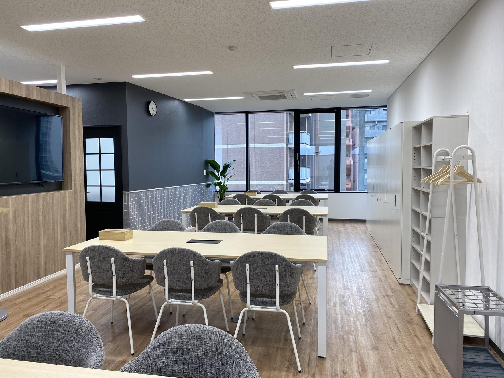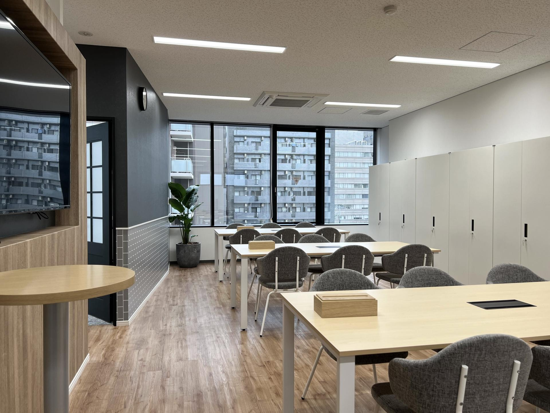 他の事業所と比較してコンパクトな物件であったため、個室の壁の角度を斜めに配置したり、モニターを壁に埋め込んだりして、動線をできるだけ広く確保できるよう工夫しました。
