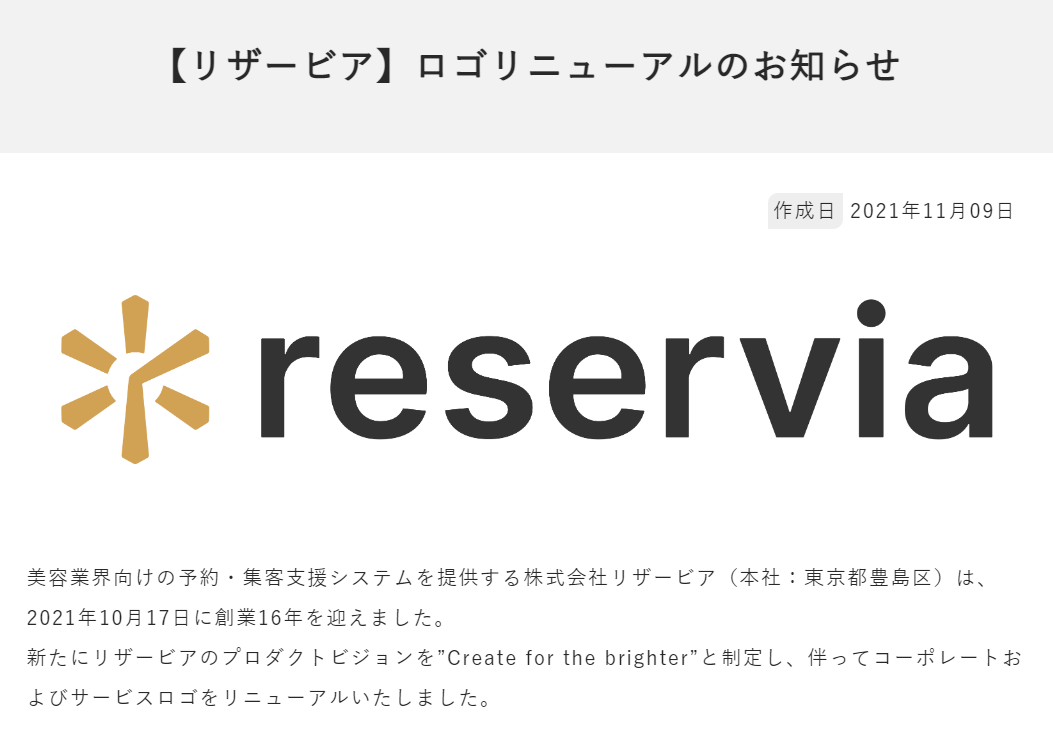 新たにリザービアのプロダクトビジョンを”Create for the brighter”と制定し、伴ってコーポレートおよびサービスロゴをリニューアルいたしました。https://rsvia.co.jp/release/new_rogo2021/