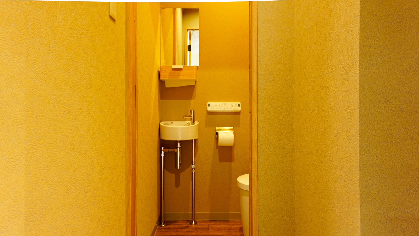 トイレを2室設けるにあたり、配管経路の制約や通路幅の確保などから限られたスペースで居心地の良い空間に仕上げるために工夫を凝らしました。