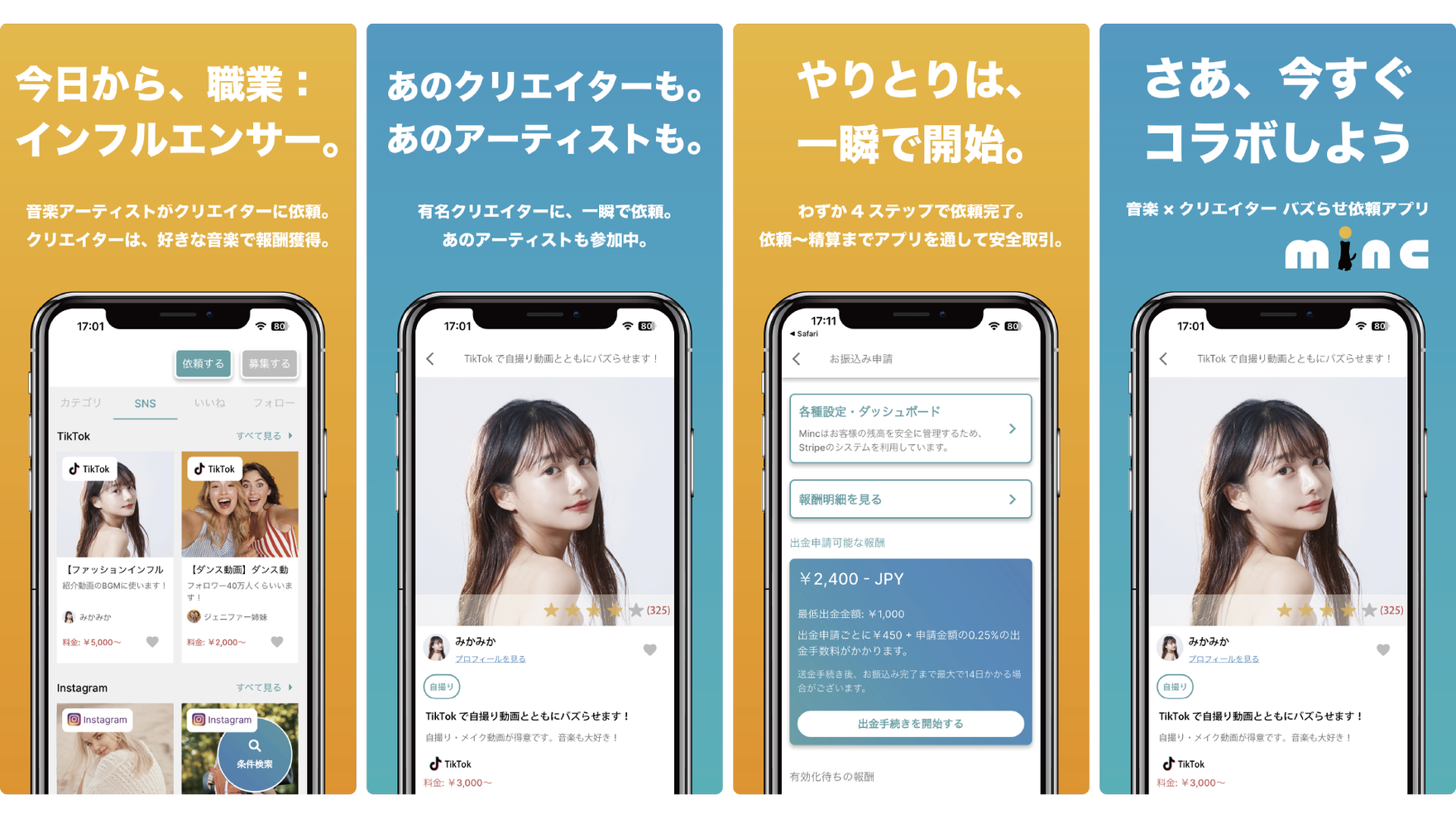 音楽アーティスト×クリエイターのプロモーション依頼プラットフォーム「minc」を運営しております。