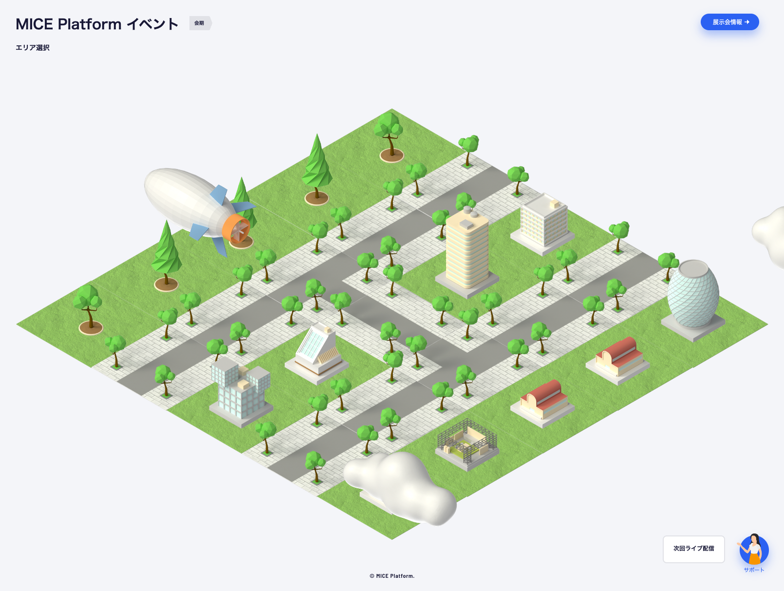 時間や場所にとらわれない新しいイベント開催を可能にするとともに臨場イベントでは見えづらい来場者の動向を可視化します。