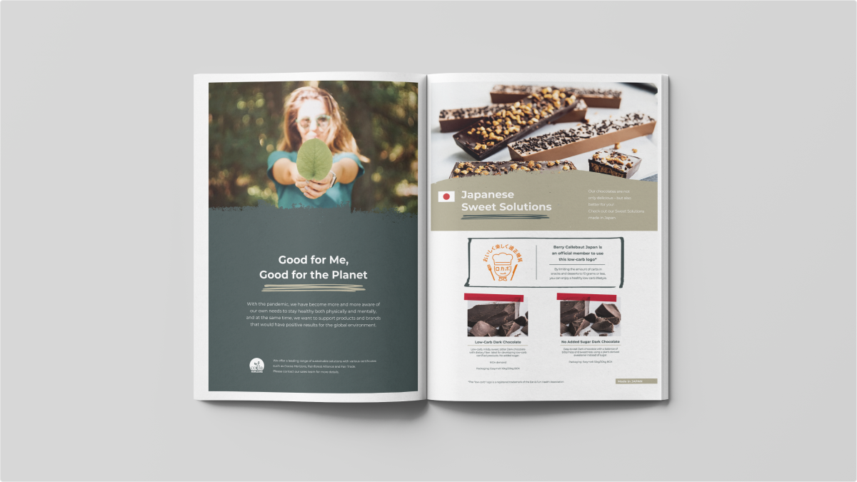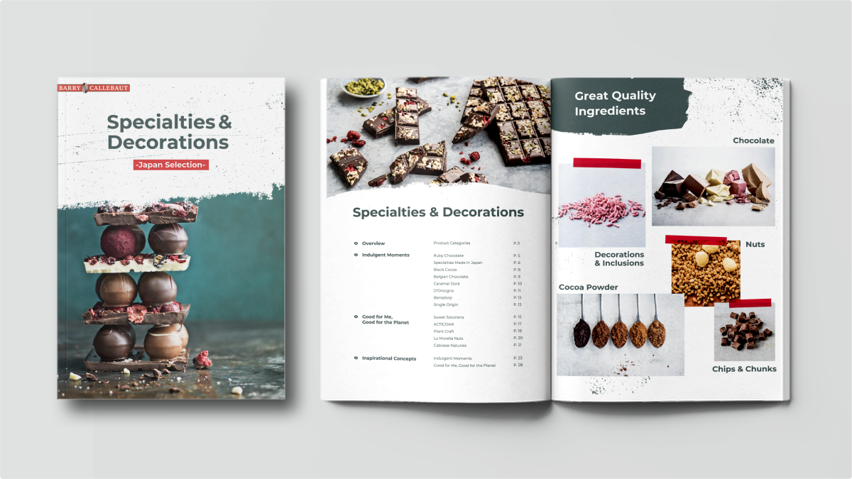 高品質のチョコレート製品を製造する多国籍企業”バリーカレボージャパン”が取り扱う、製品をまとめたカタログデザインを担当しました。 バリーカレボーブランドのトーン&マナーを意識したグランジ表現などの装飾を用いて、英語版、日本語版とそれぞれ制作しました。