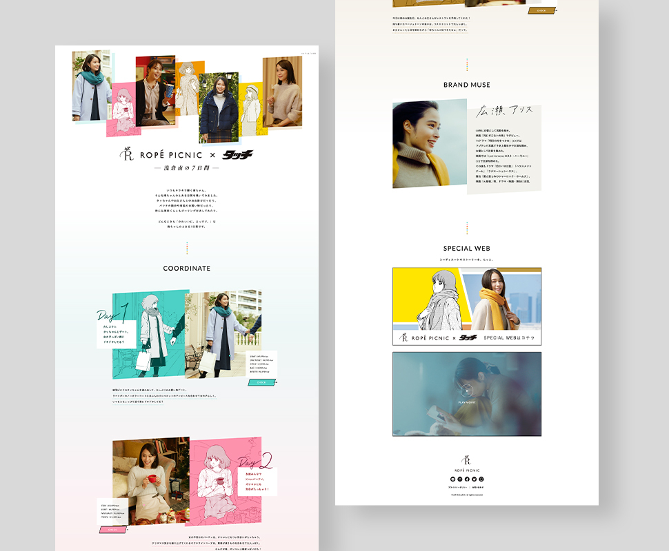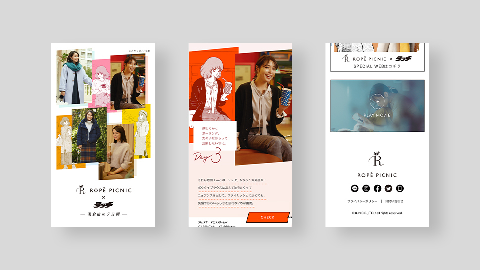 ロペピクニックの冬のキャンペーンのKV、WEBデザインのアートディレクションを担当。タッチの浅倉南の7日間の日常生活にちなんだコーデを広告しました。