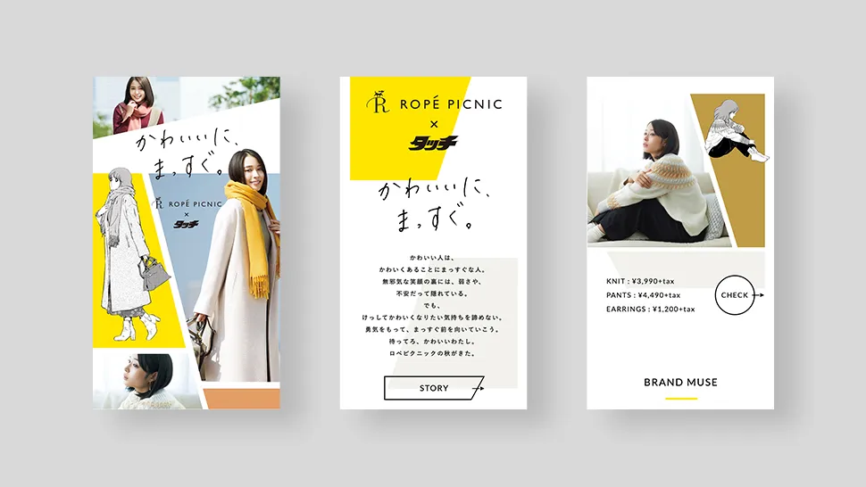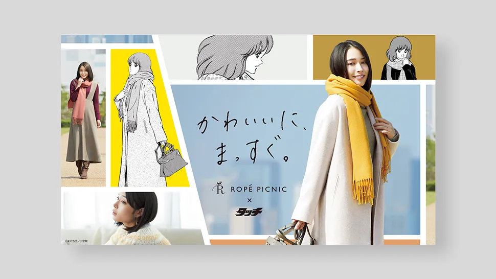 ロペピクニックの秋のキャンペーンのKV、WEBデザインのアートディレクションを担当。タッチの浅倉南をイメージキャラクターに起用し、秋のコレクションを広告しています。