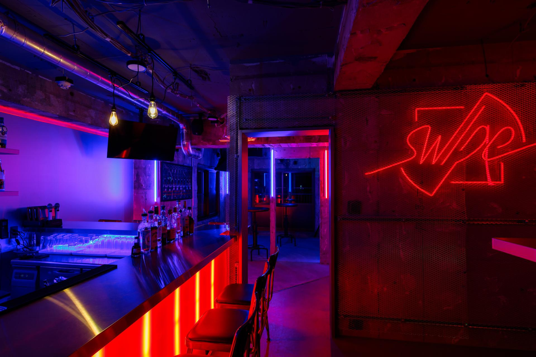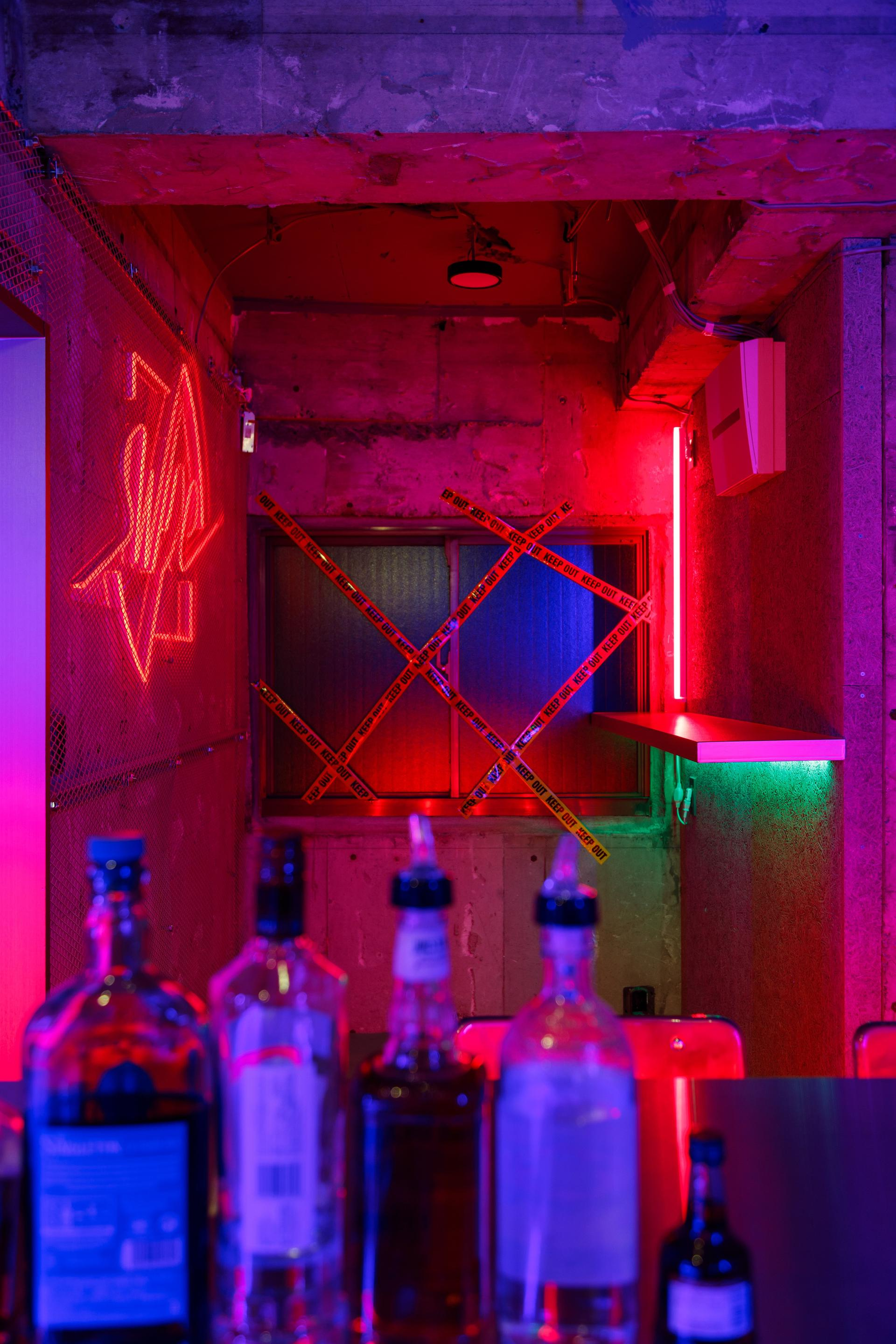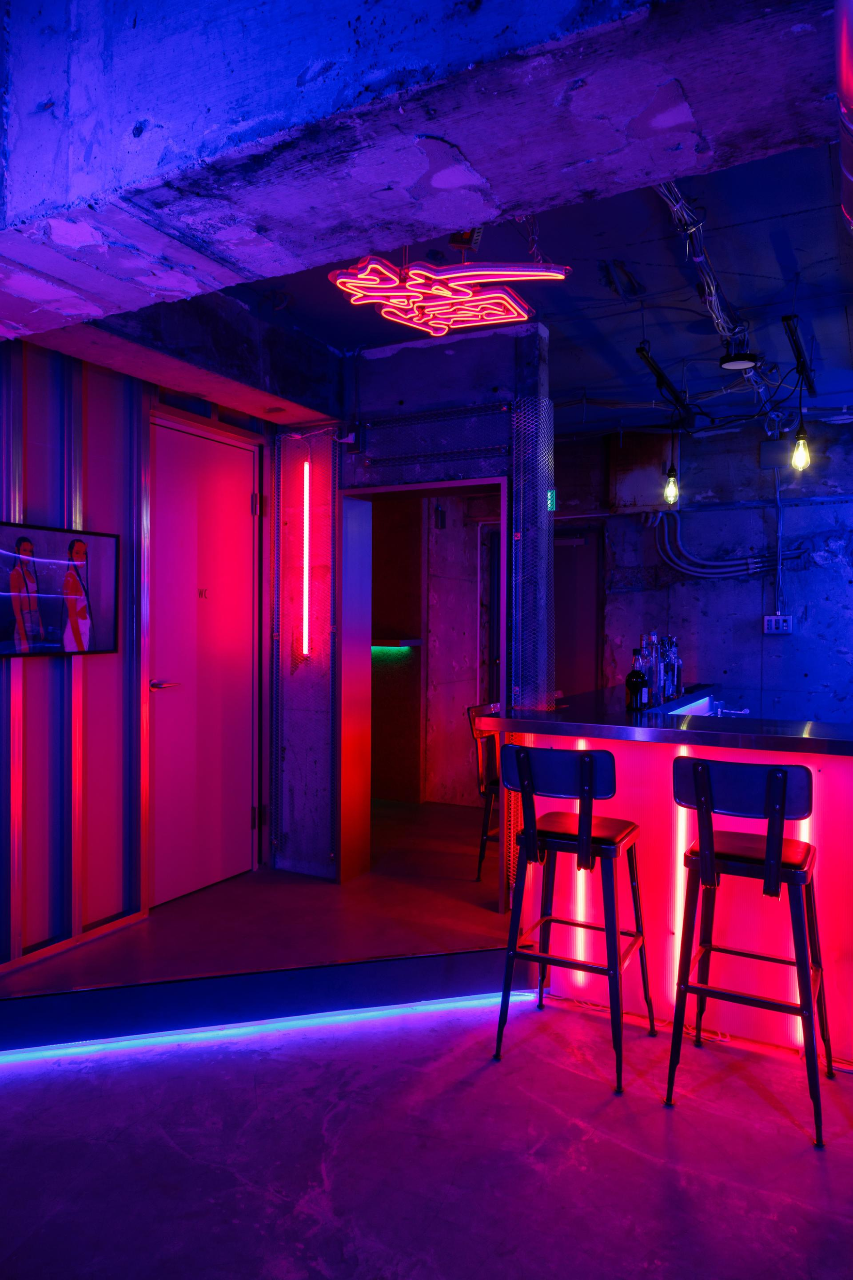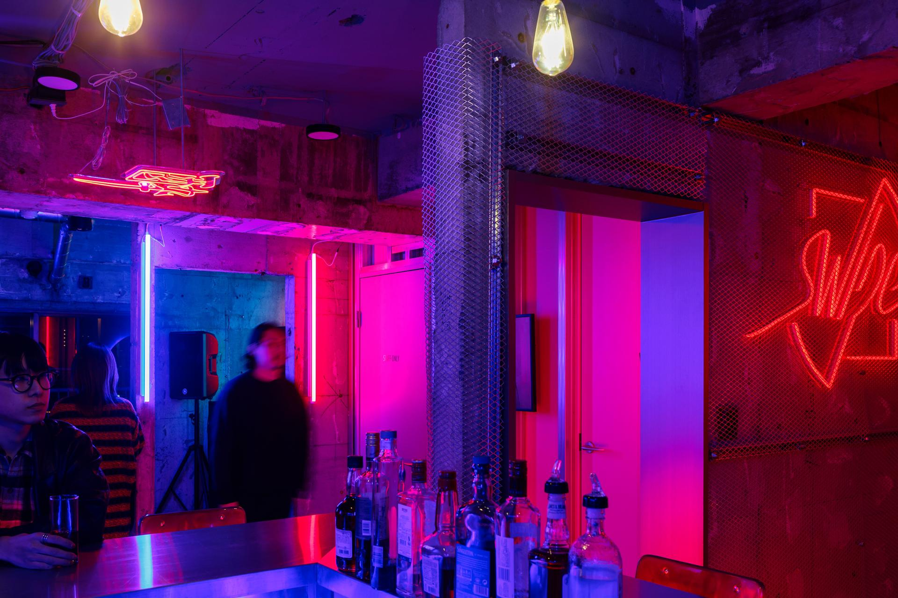 テーマは「ネオ居酒屋」。レトロと現代が融合し、若者から大人まで幅広い層に注目される「ネオ」テイストに「秘密基地」や「レイブ」テイストを加え、都心の遊び心あふれる人々に向けた非現実的で特別な空間を目指しました。