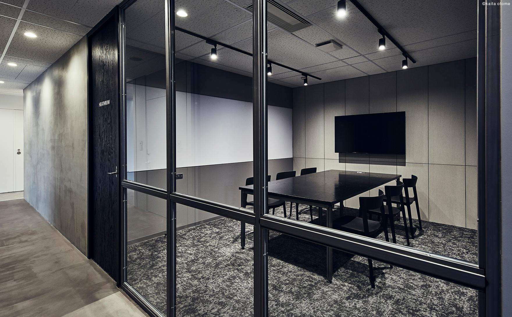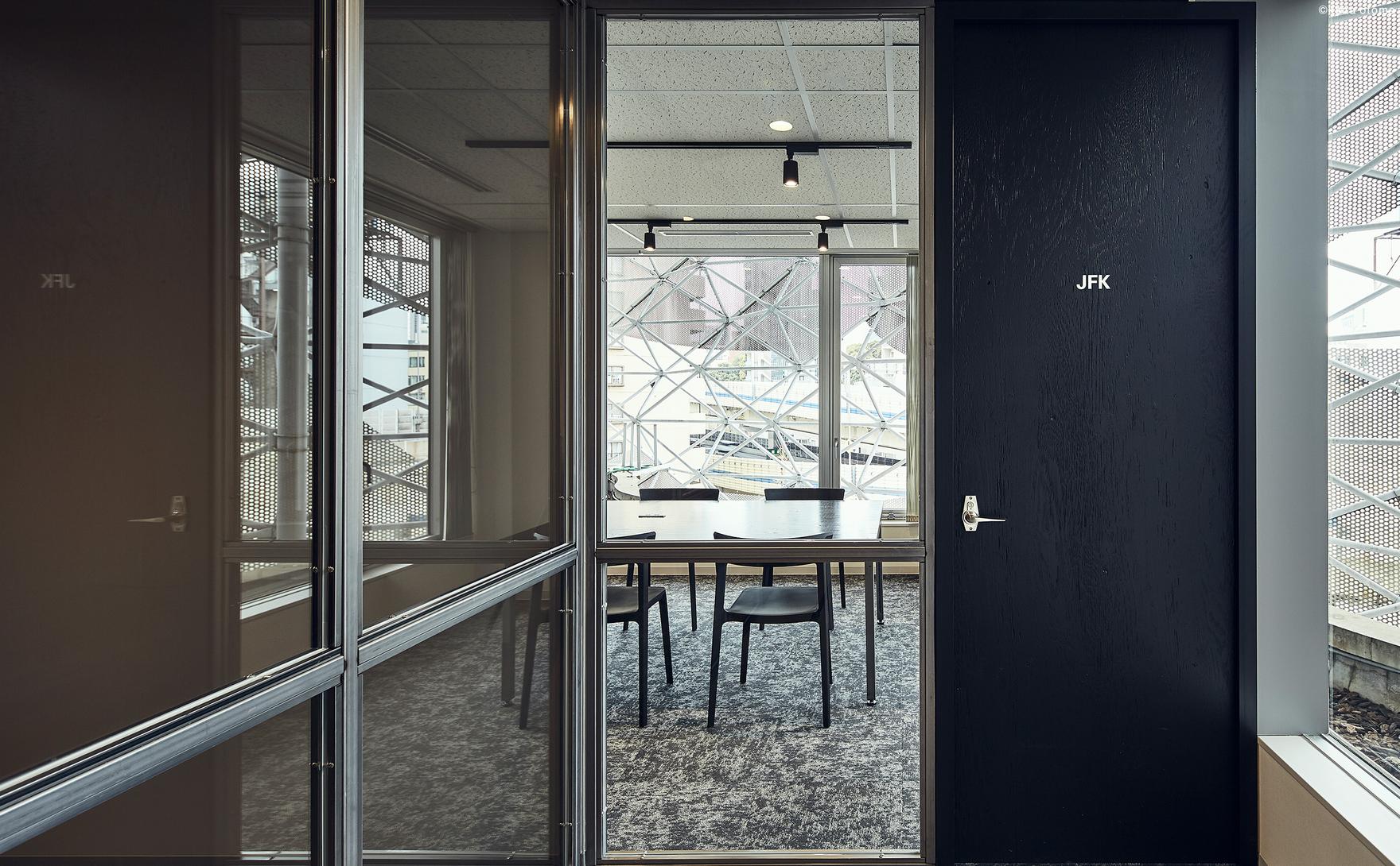 デザインのディテールを「Warehouse」というコンセプトに合わせ、全体的にスチールの素地やラーチ合板等の素材を使用し、照明のスイッチやレバーハンドル等の細部までこだわったデザインに。素材そのままのラフさと無骨さのあるパーツ使いで「Warehosue」を表現した。エントランスにはシャワーブース型の象徴的な受付ブースを設置し、来客に驚きを与えられるような空間とした。