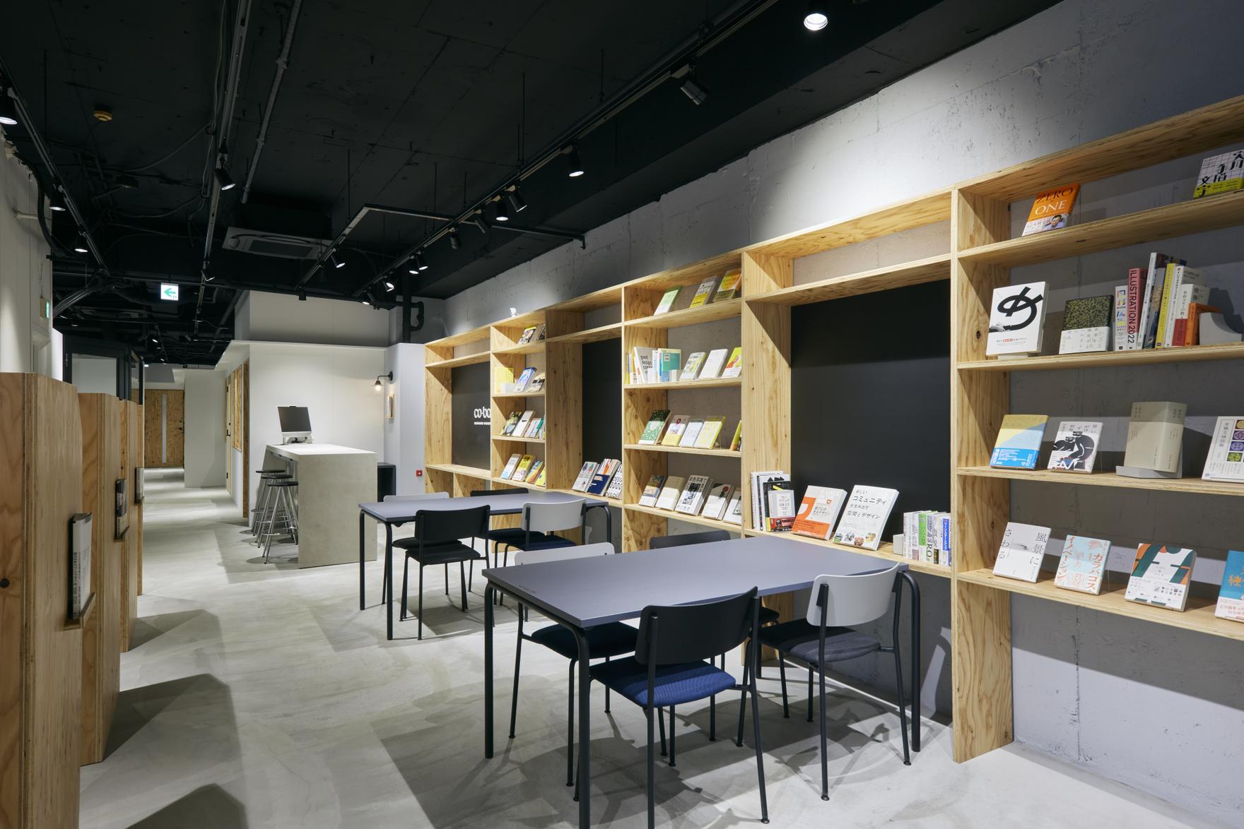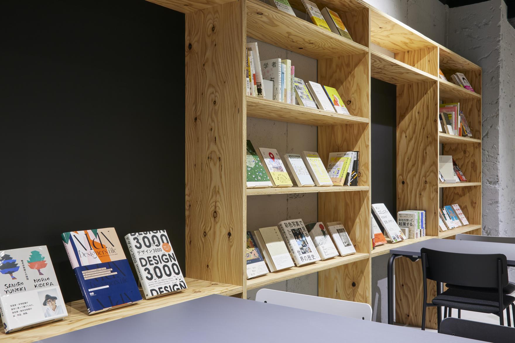 モノや人の交わりにより五感でうけるポジティブな刺激=グッドノイズのある空間を目指し、拠点を貫く壁一面には、選書書籍と利用者が持ち込んだ書籍やプロダクトが並べられる、ひらめきの源泉になる本棚を配置した。