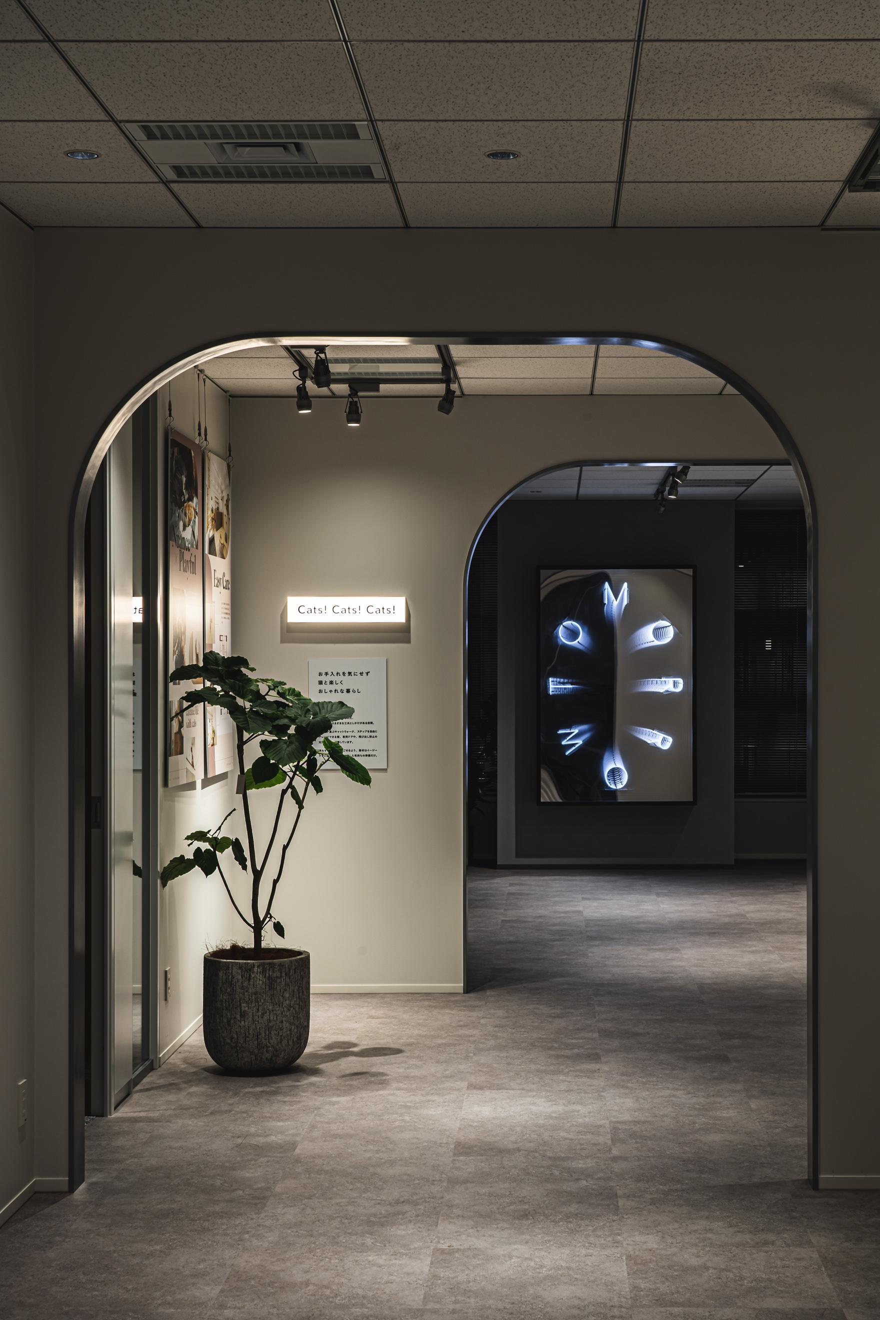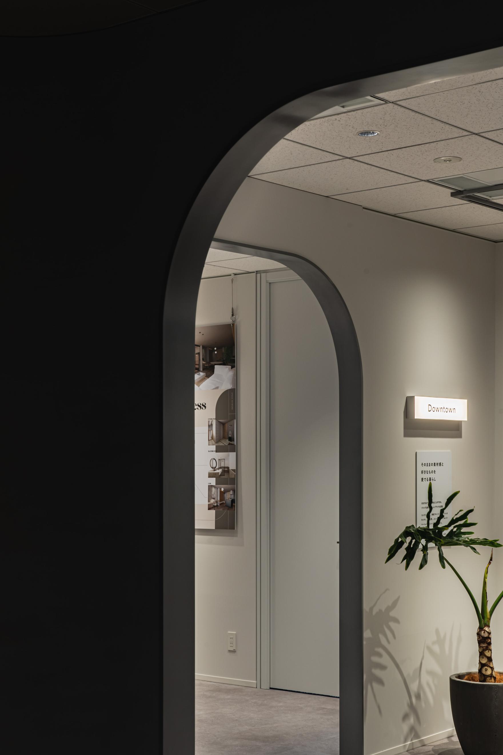 また、カウカモの物件に合わせたライフスタイル(内装)提案サービスを魅せる空間として、そのライフスタイルを一覧できるアーチの壁が連続する印象的な空間を作った。ここでは「1つだけではない色んな暮らしがカウカモでは実現できる」という意味を込めている。