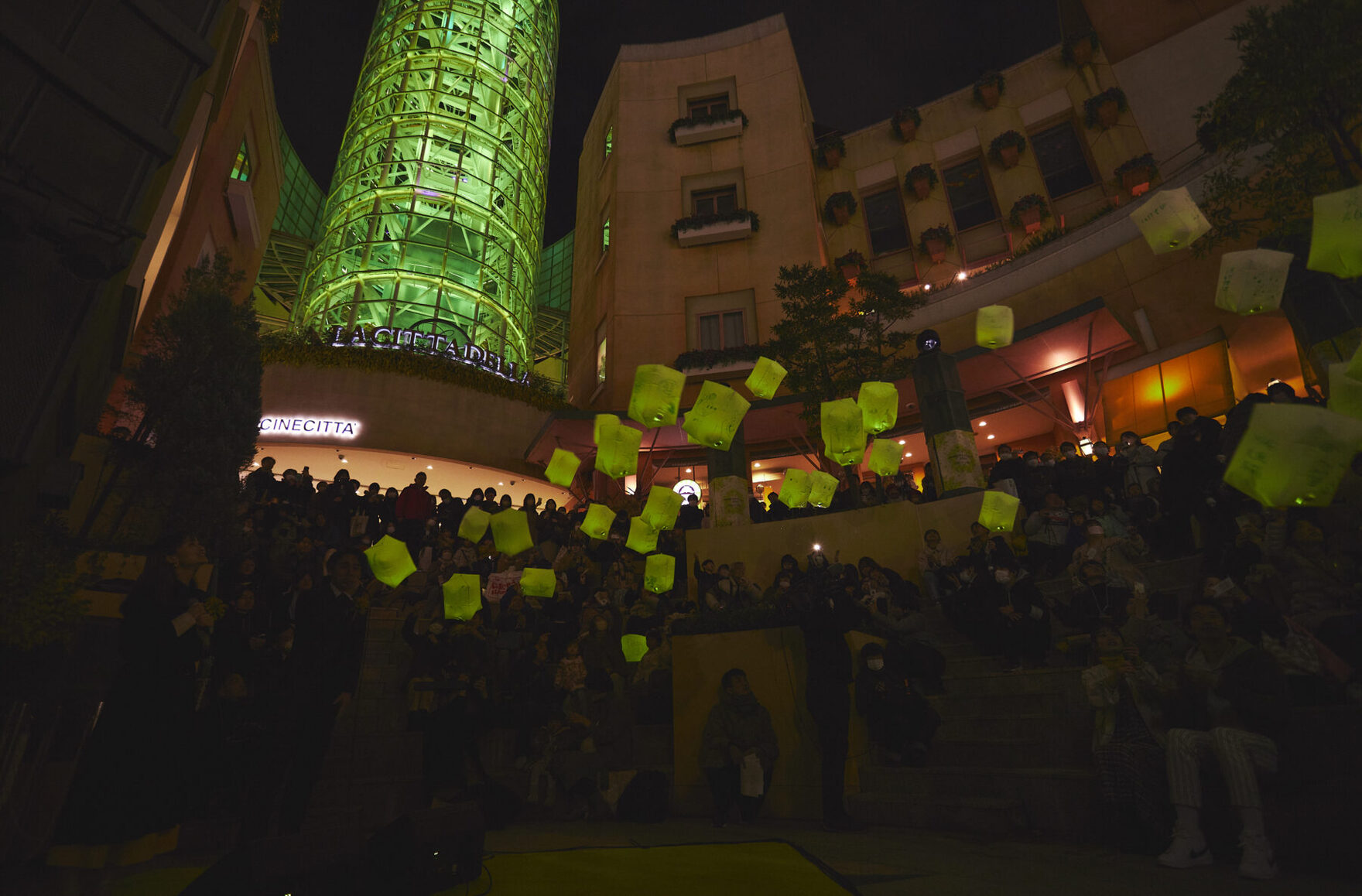 感謝の気持ちが込められたスカイランタン®が舞い上がり、ラ チッタデッラの夜を美しく彩りました。