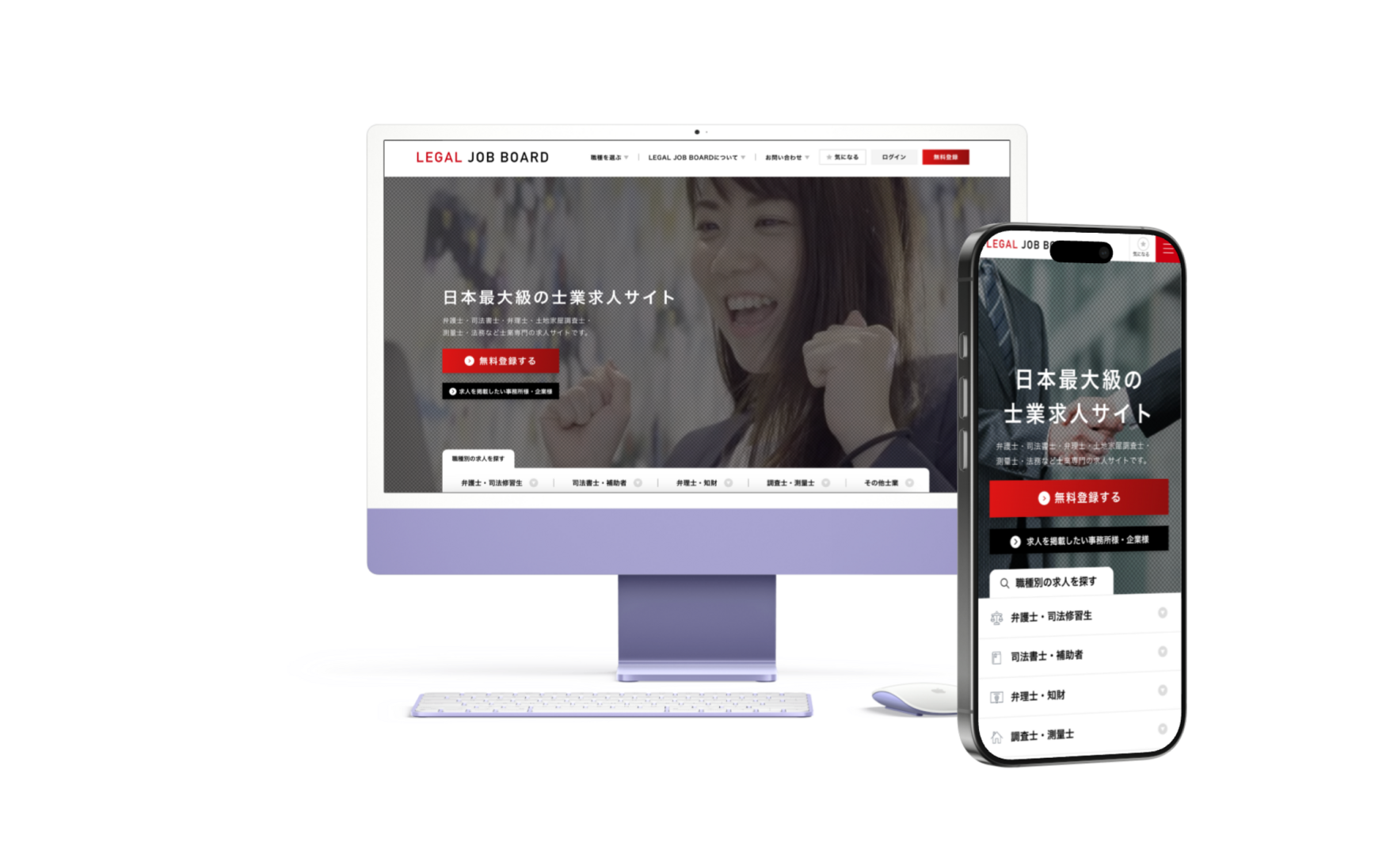 士業プロフェッショナル向け転職支援サービスです。サービス開始から急成長を遂げ、司法書士業界や弁理士業界などでシェアNo.1(※)を誇るサービスとなっています。弁護士、司法書士、弁理士、土地家屋調査士など、士業領域に特化した転職エージェントサービスと、ダイレクトリクルーティングが融合した独自の求人サイトを提供。求職者と採用担当者が直接メッセージをやり取りできる業界初のシステムも採用し、個々に合ったキャリアの実現をサポートしています。(※)当社調べ