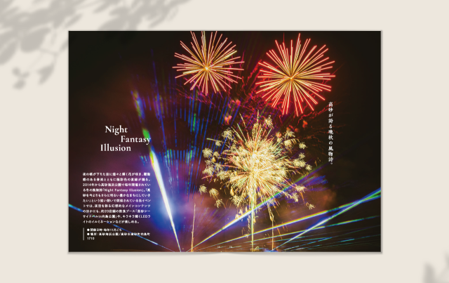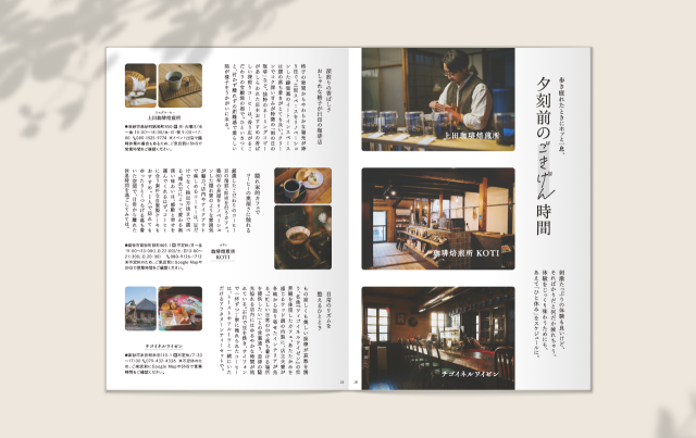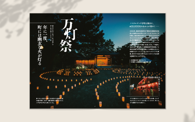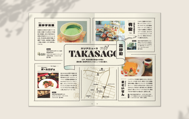 高砂市の観光案内冊子を制作しました。「高砂市を1日で巡る旅」をテーマに高砂市内のイベントやグルメ、寺社仏閣を紹介しています。ターゲットは50歳〜60歳に設定し、落ち着いた雰囲気で読んでいただけるよう、文字の大きさや写真の雰囲気にこだわりました。