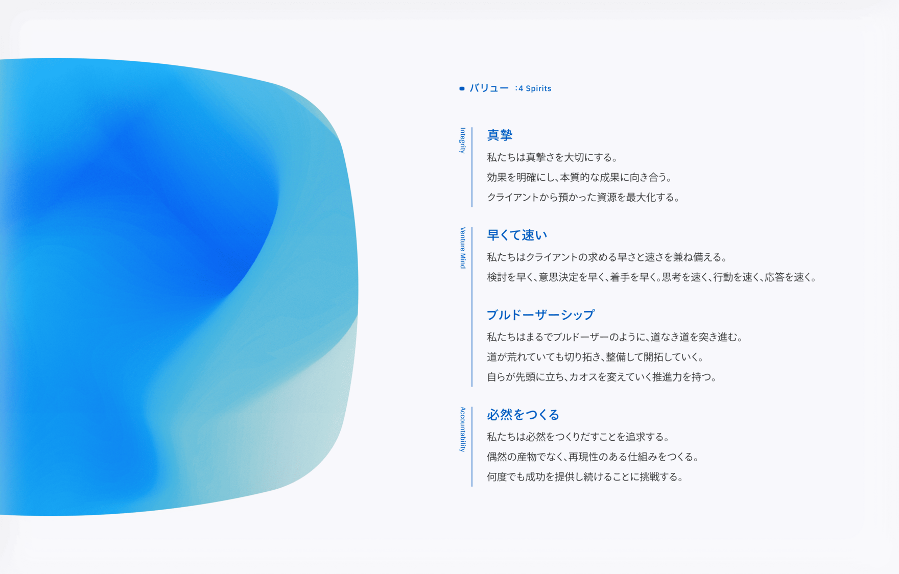 この言葉には、変化を恐れず時代や世の中に求められることに対して常に挑戦する姿勢と、これまで効果や価値が不明瞭になりがちなマスコミュニケーションにデータやテクノロジーで必然を生み出すことに挑む姿勢が込められています。