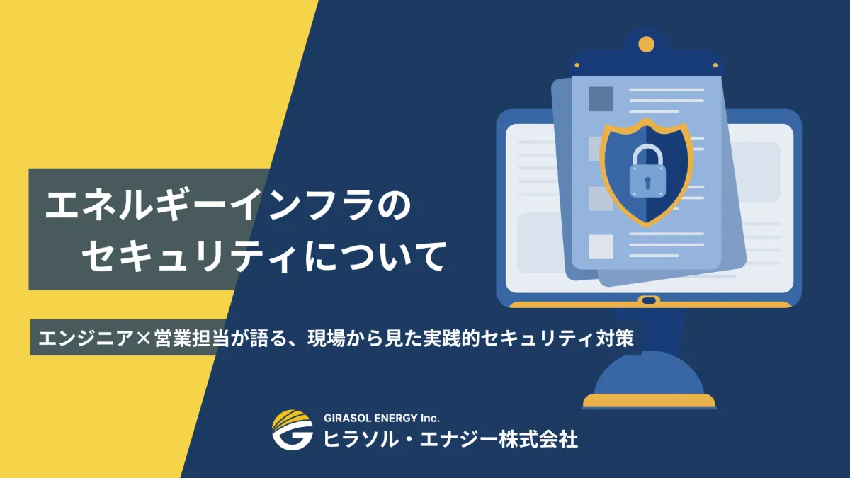 近年、太陽光発電所や蓄電池などの分散型エネルギーインフラにおいても、サイバー攻撃への備えが注目されています。セキュリティへの関心が高まる中、ヒラソル・エナジーにて技術開発に関わるCTO池上とチーフエンジニア井原、営業現場に立つ田中が、エネルギーインフラで起こりうるリスクや対策について対談を行いました。本動画と記事では、その内容をご紹介しています。