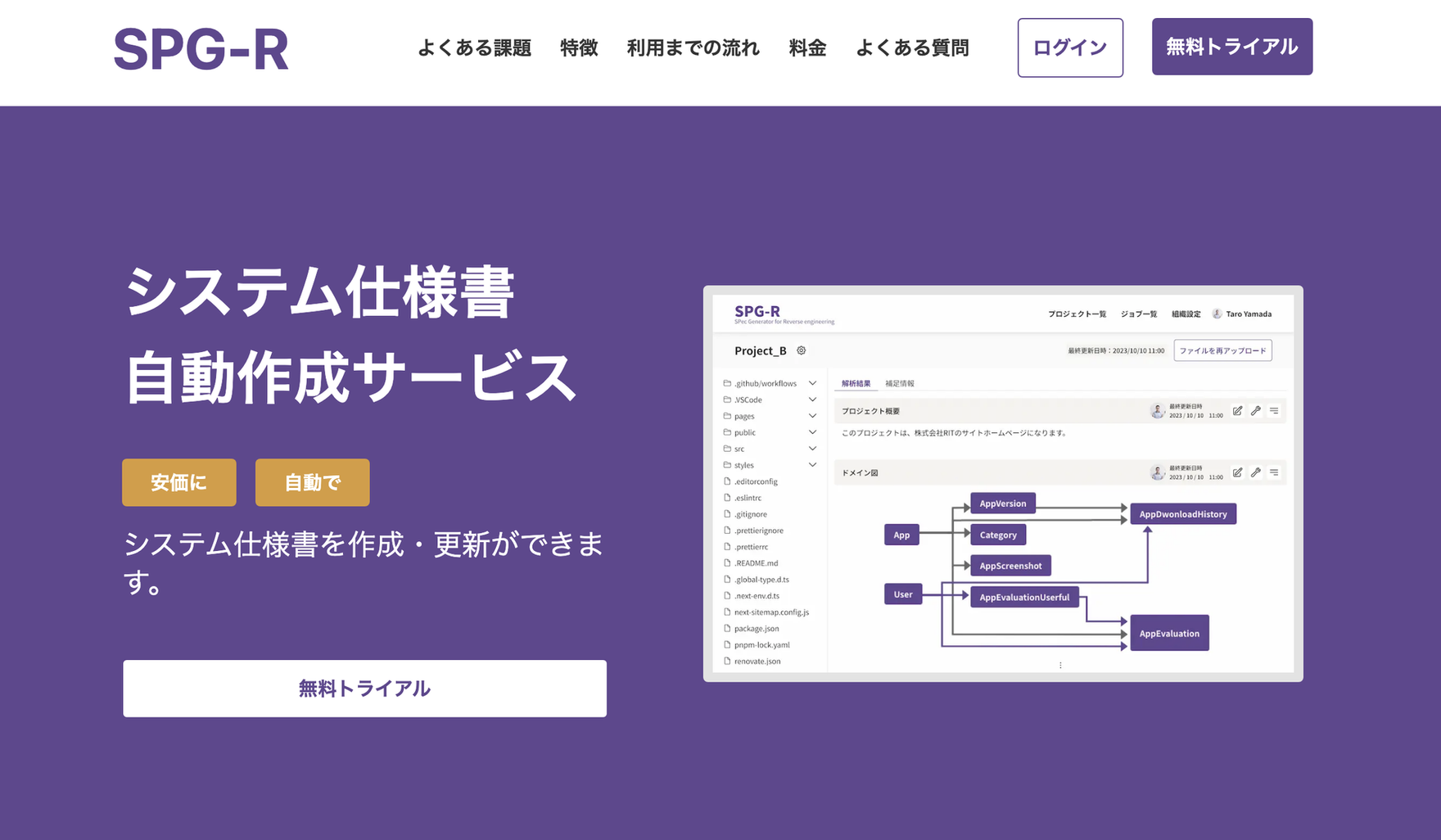 AI技術「ChatGPT」を活用したシステム仕様書の自動作成サービス。安全性を確保しつつ、安価にブラックボックス化している問題を解決します。